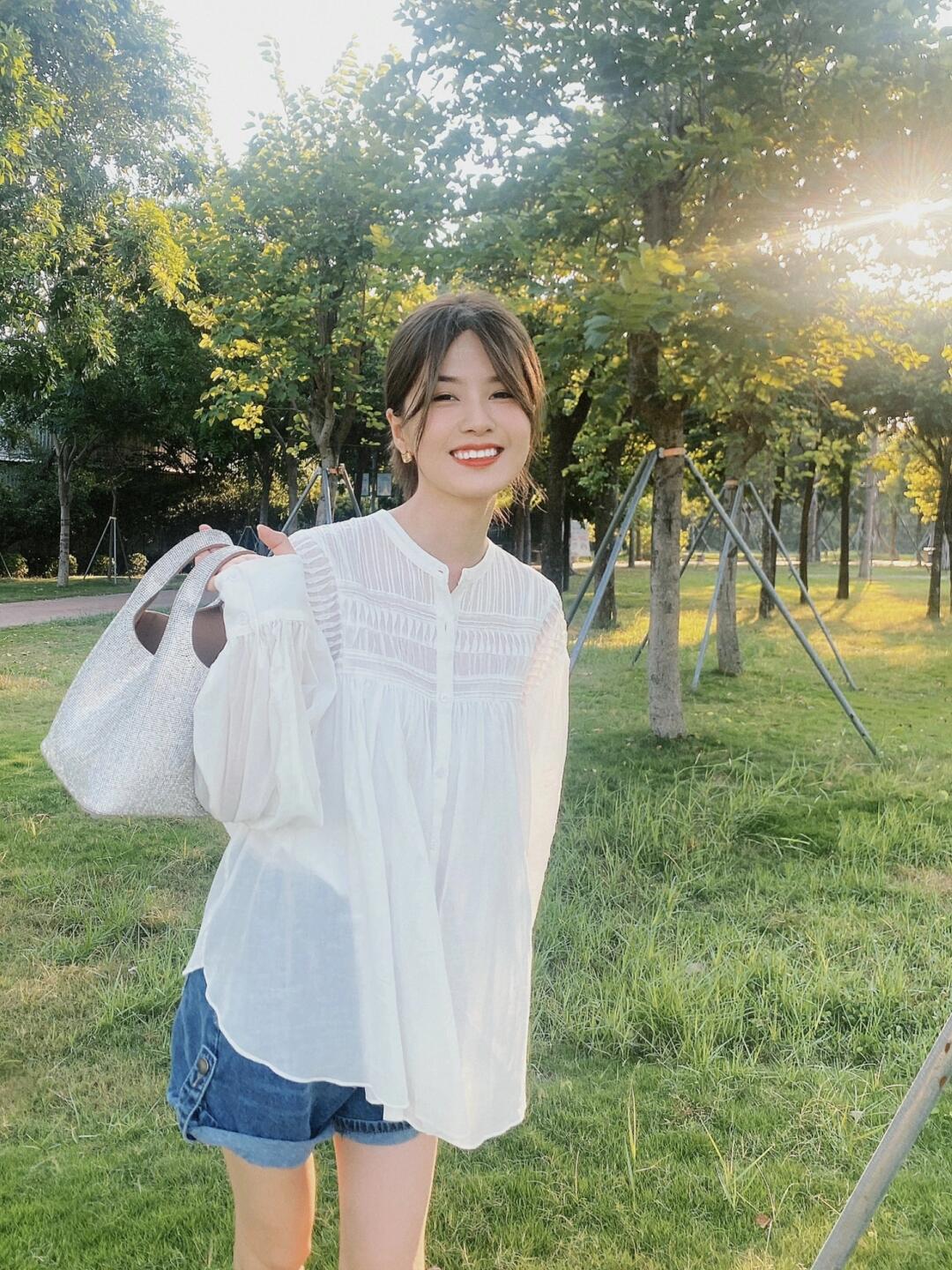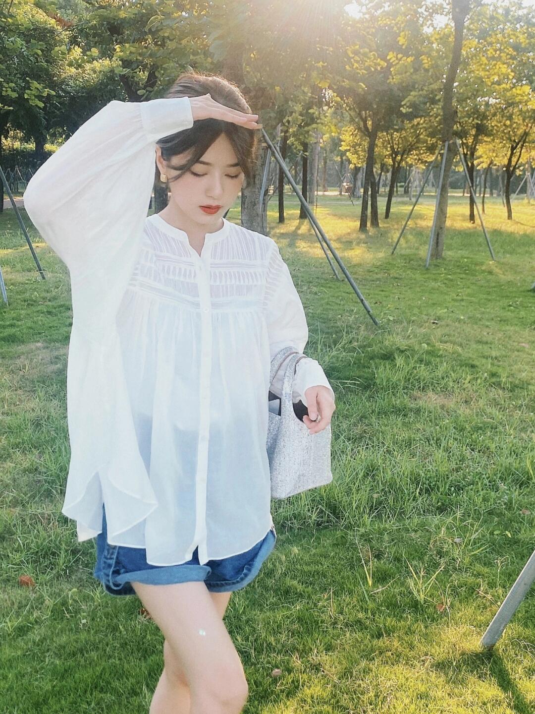 版型宽松,风琴褶工艺增加了视觉上的层次感,搭配裤子裙子都好看的一件衬衫。