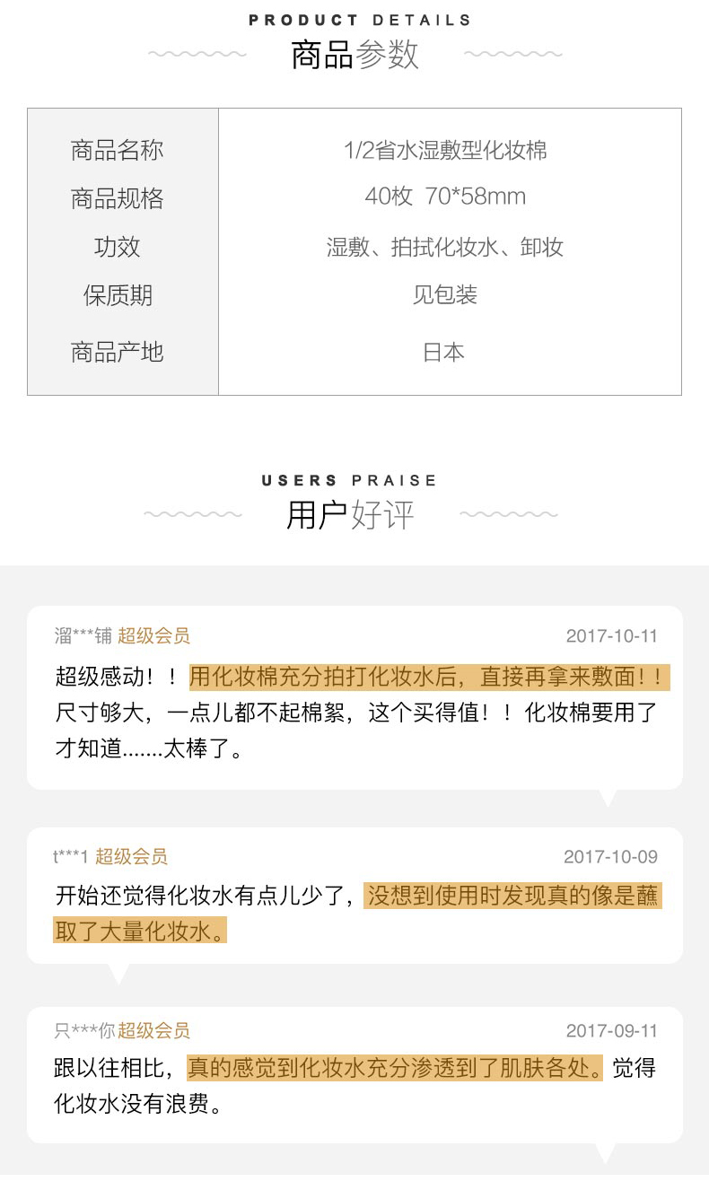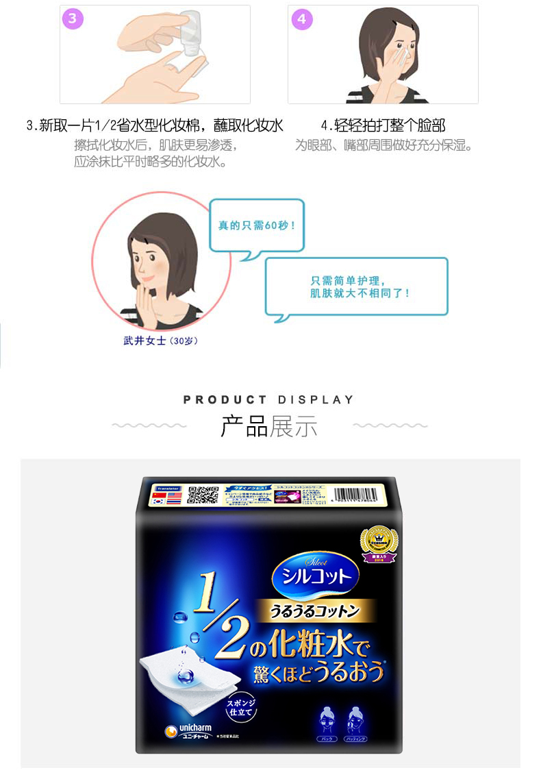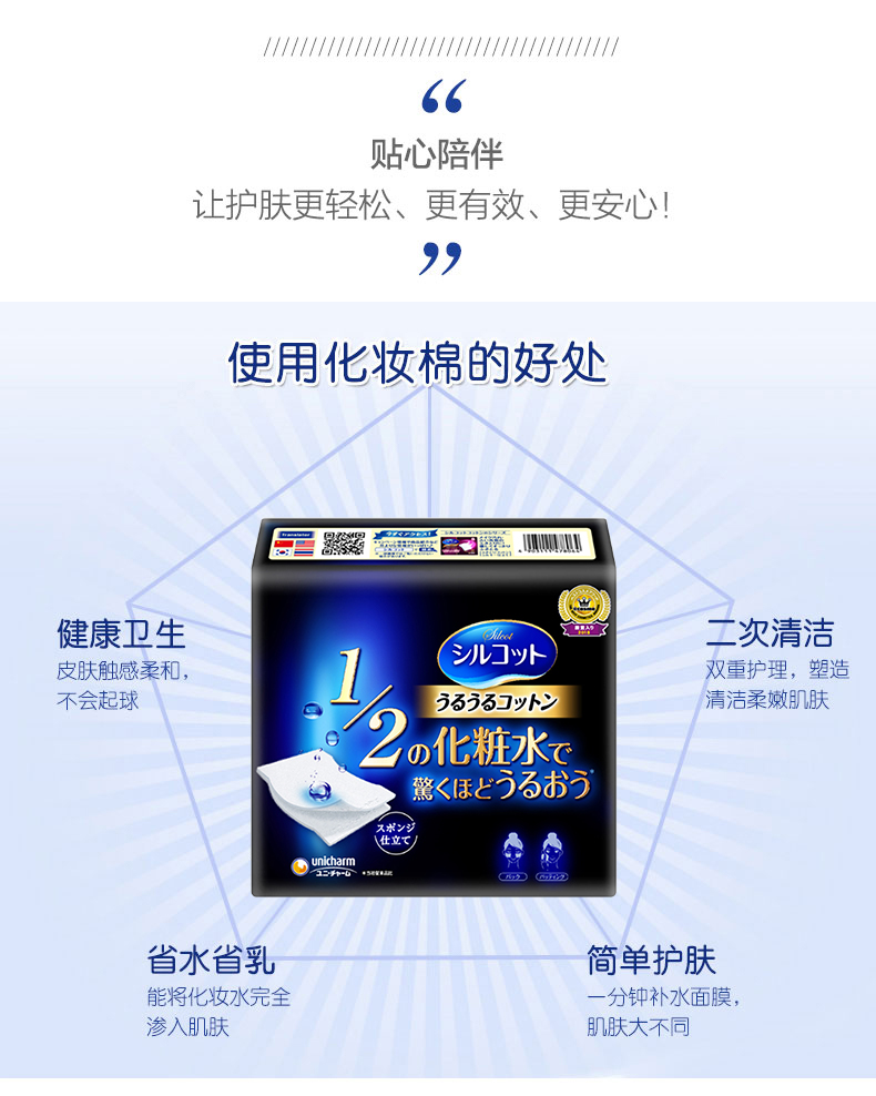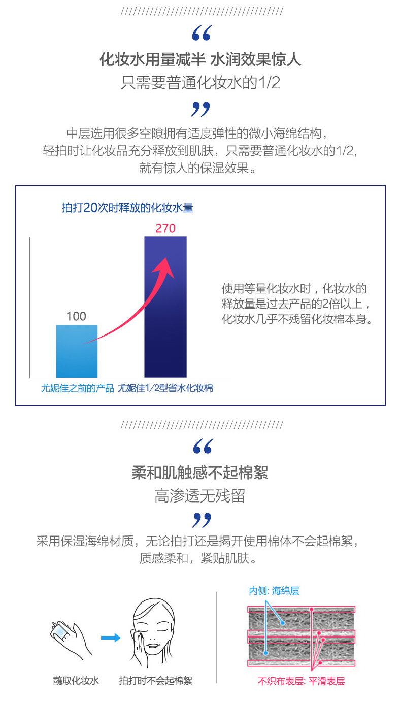尤妮佳省水1/2化妆棉卸妆棉湿敷脸部美容