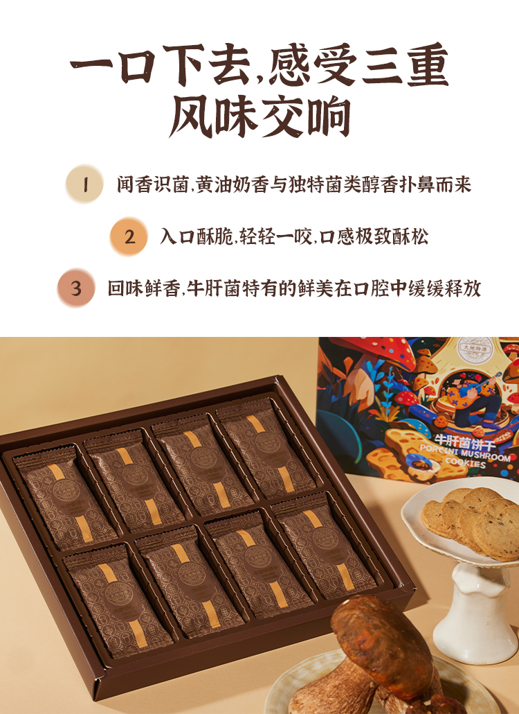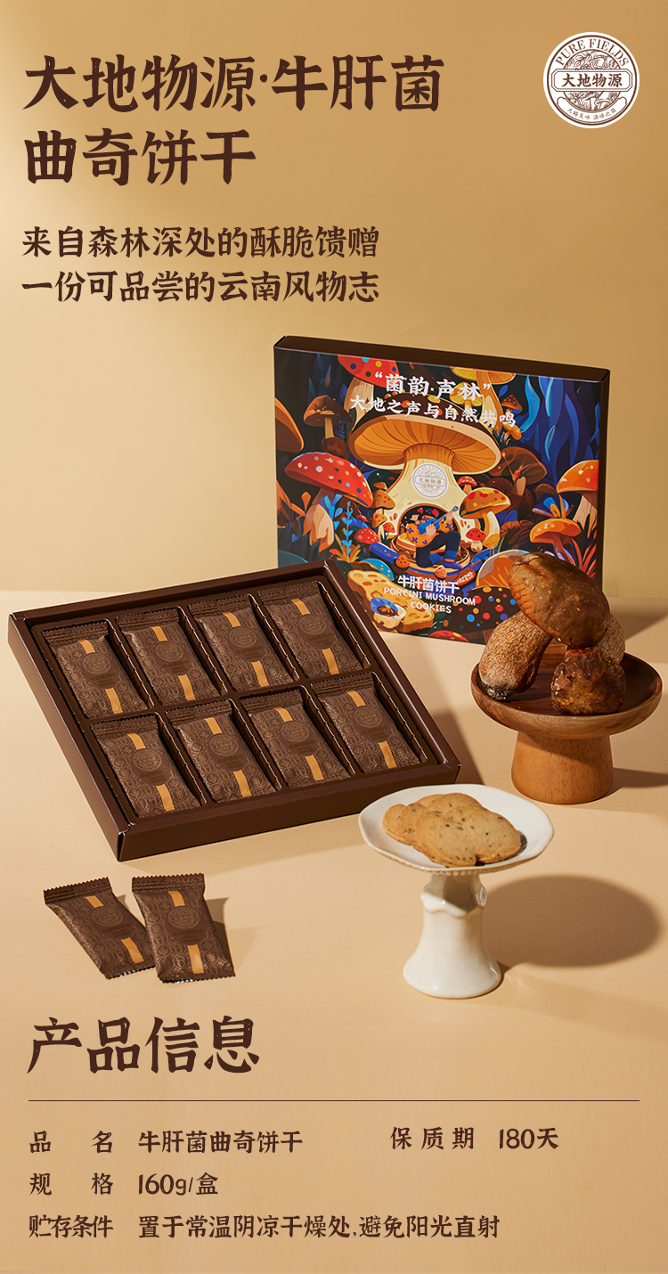 大地物源牛肝菌曲奇饼干云南特产下午茶点心礼盒装160g