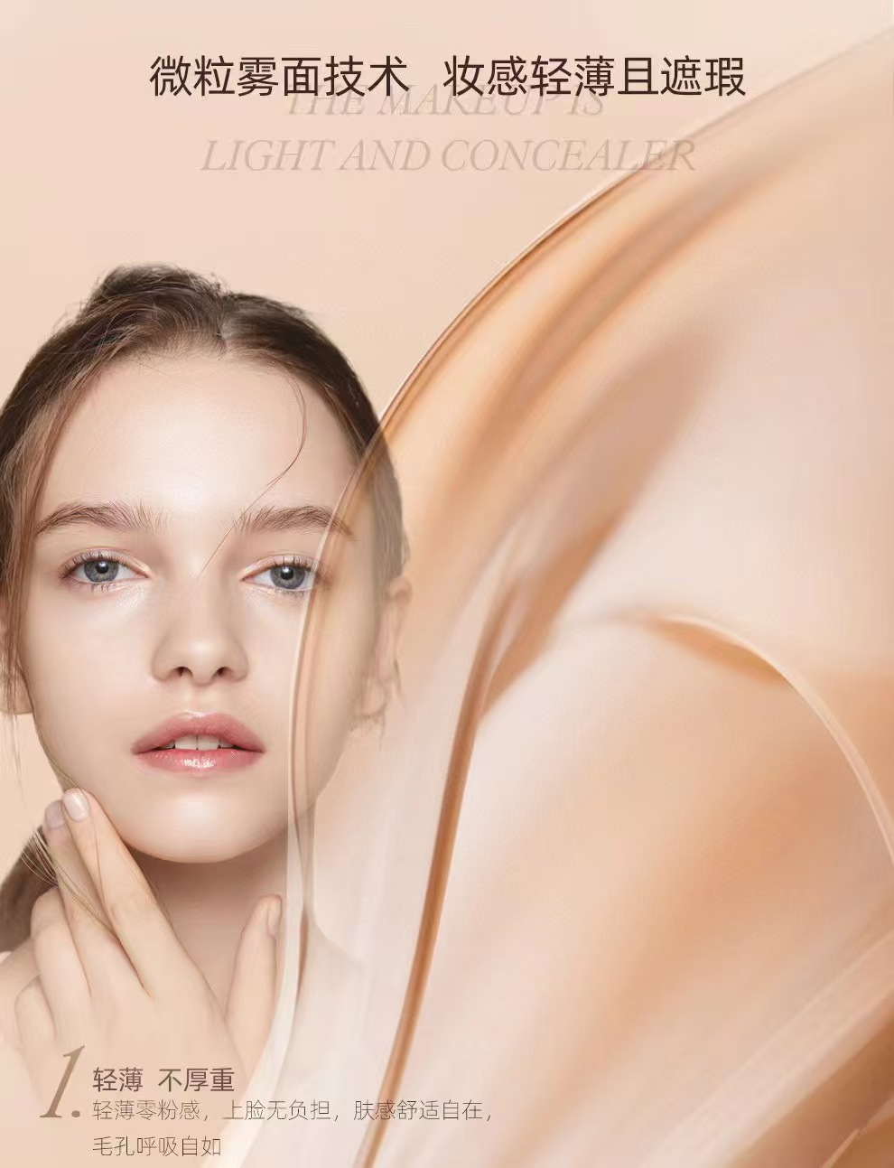 持妆一整天都不会斑驳!上脸是一种很gao级的哑光妆效!并且时间越久,底妆越服帖!越自然,给你最wan美的底妆!
