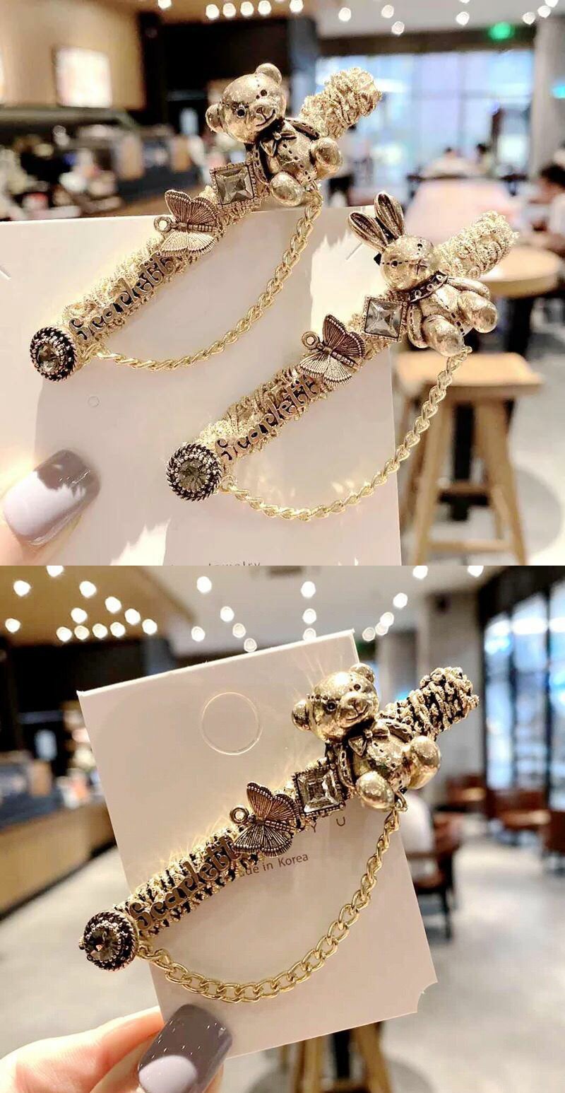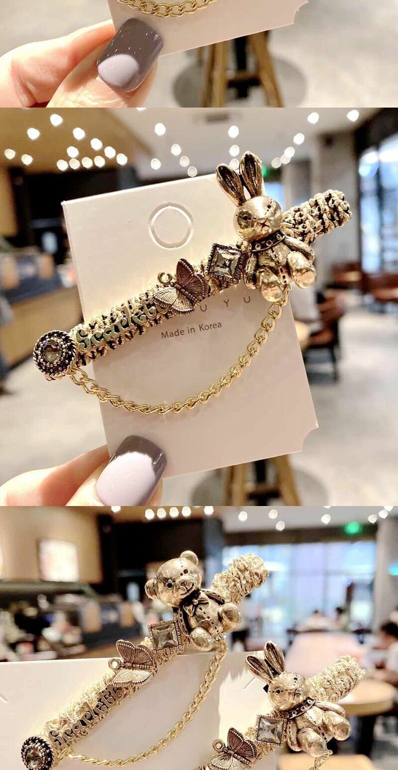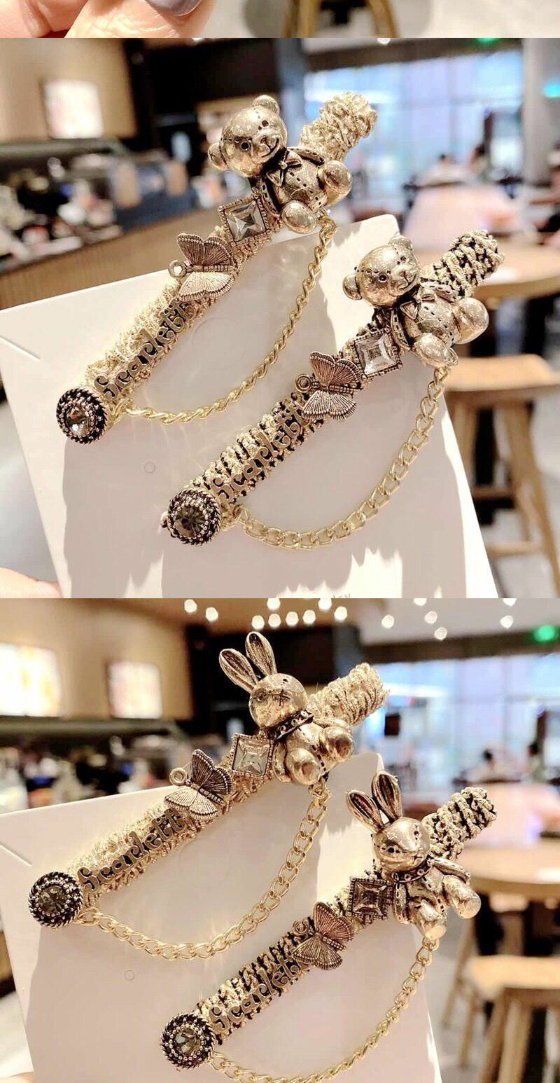 韩式可爱复古宫廷风巴洛克发夹可爱小兔小熊边夹水晶刘海夹发饰