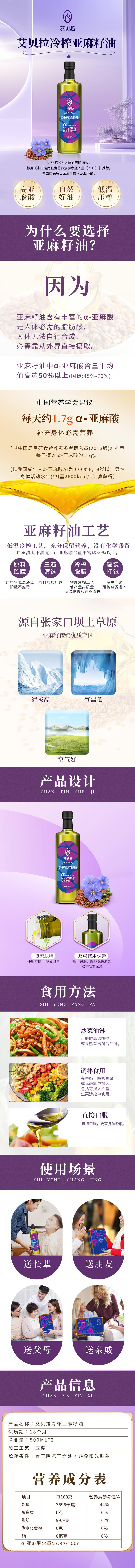 艾贝拉冷榨亚麻籽油礼盒500ml*2