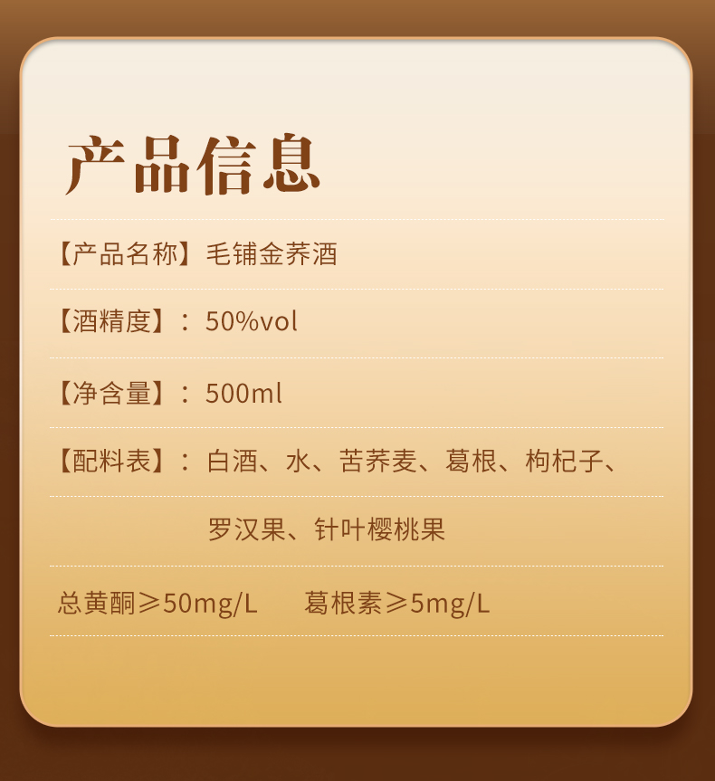 毛铺 金荞酒 50度 500ml 荞香型 接待 宴请 送礼 自饮