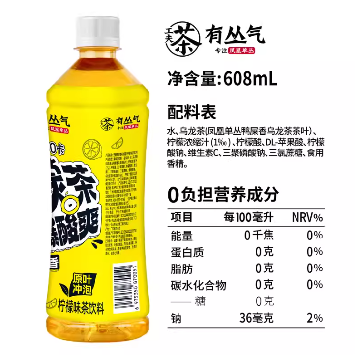 有丛气 鸭屎香乌龙茶饮料{青柠味} 0糖0脂肪608ml/瓶