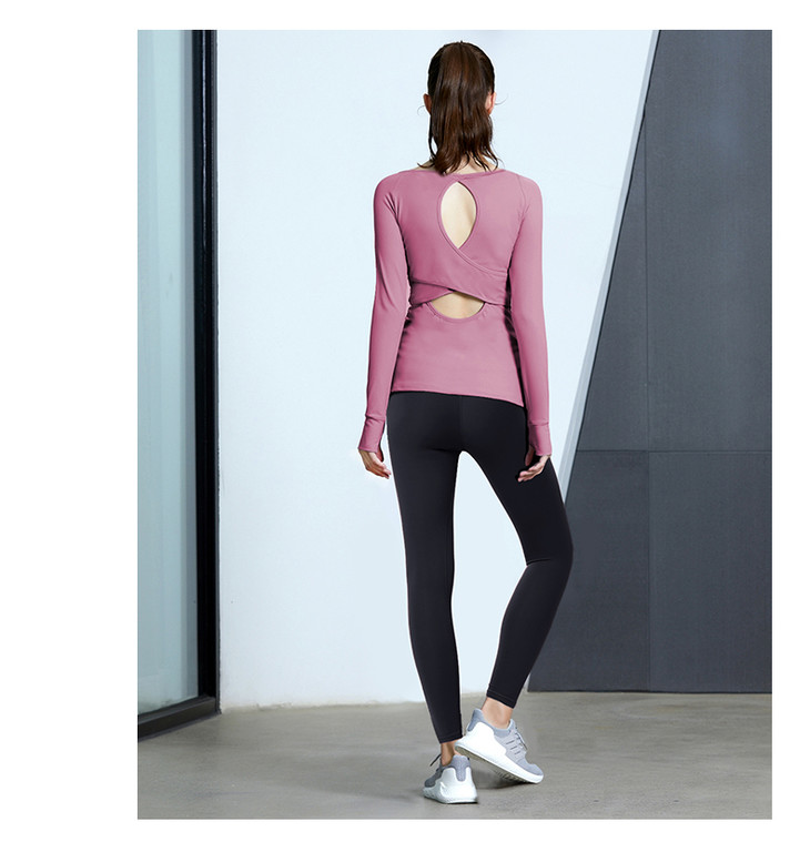 新款交叉镂空线条美背专业瑜伽服弹力显瘦运动健身套装女09151