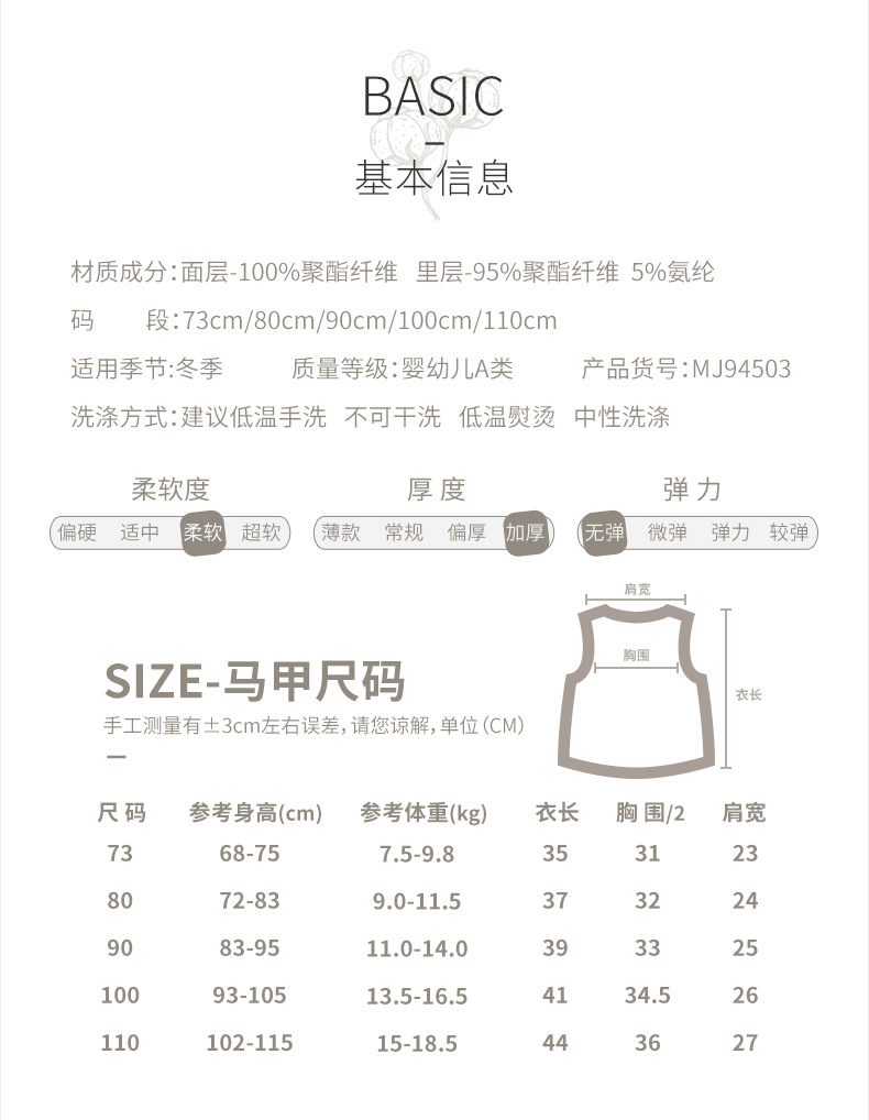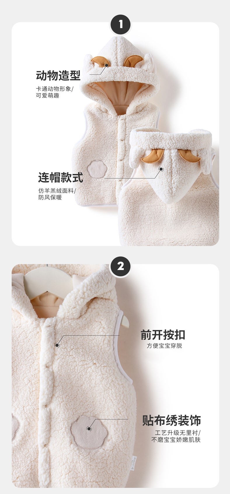 【快速锁温 保暖舒适】儿童马甲秋冬季保暖婴儿背心可爱男童坎肩女宝宝外穿连帽外出衣服