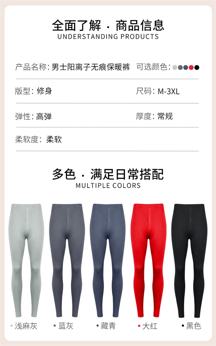 雅黛丽秋裤男款春秋爸爸打底裤5A抑菌高端大码内穿阳离子保暖裤