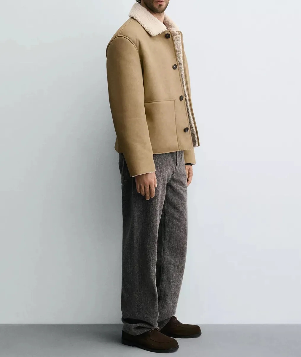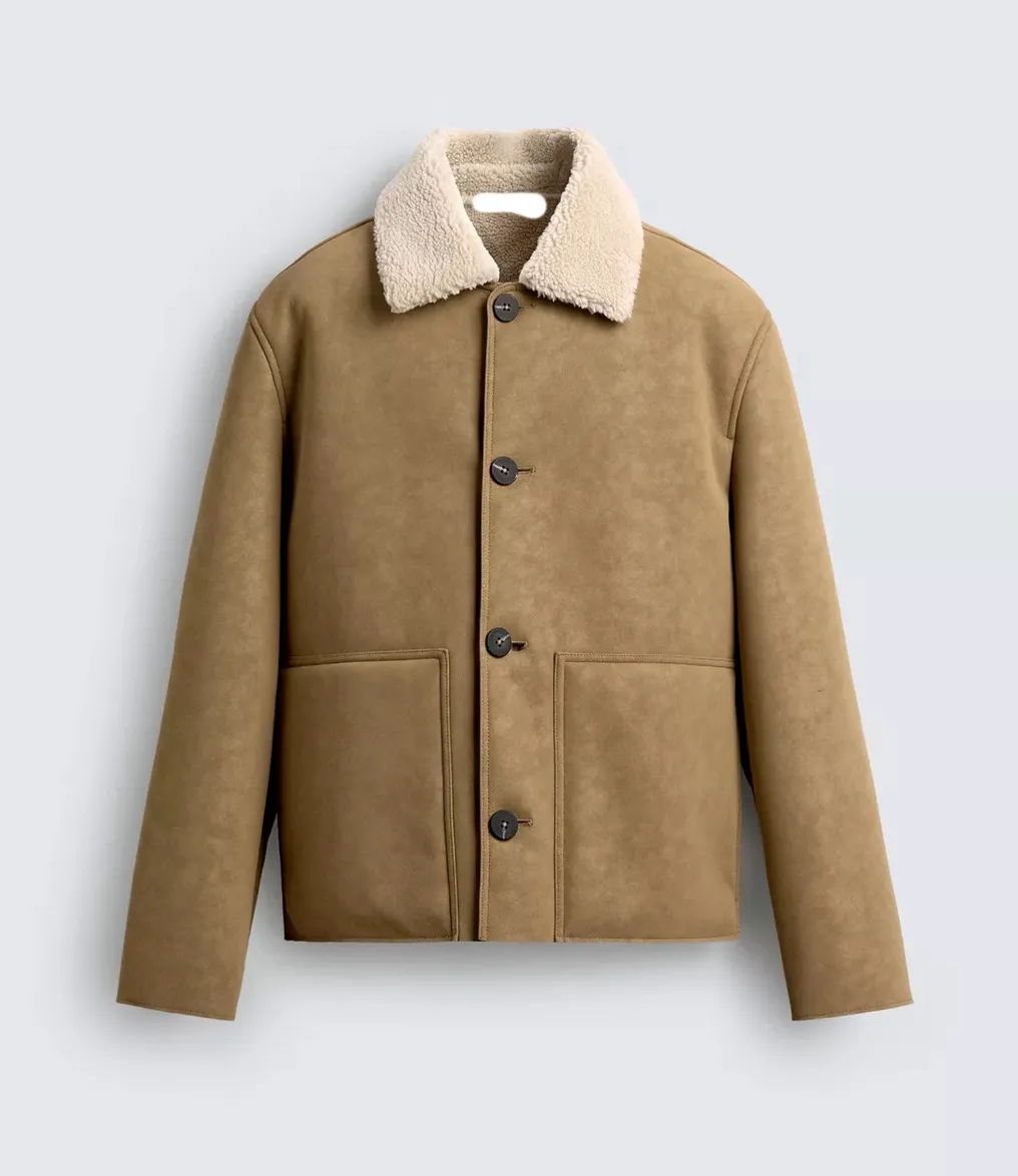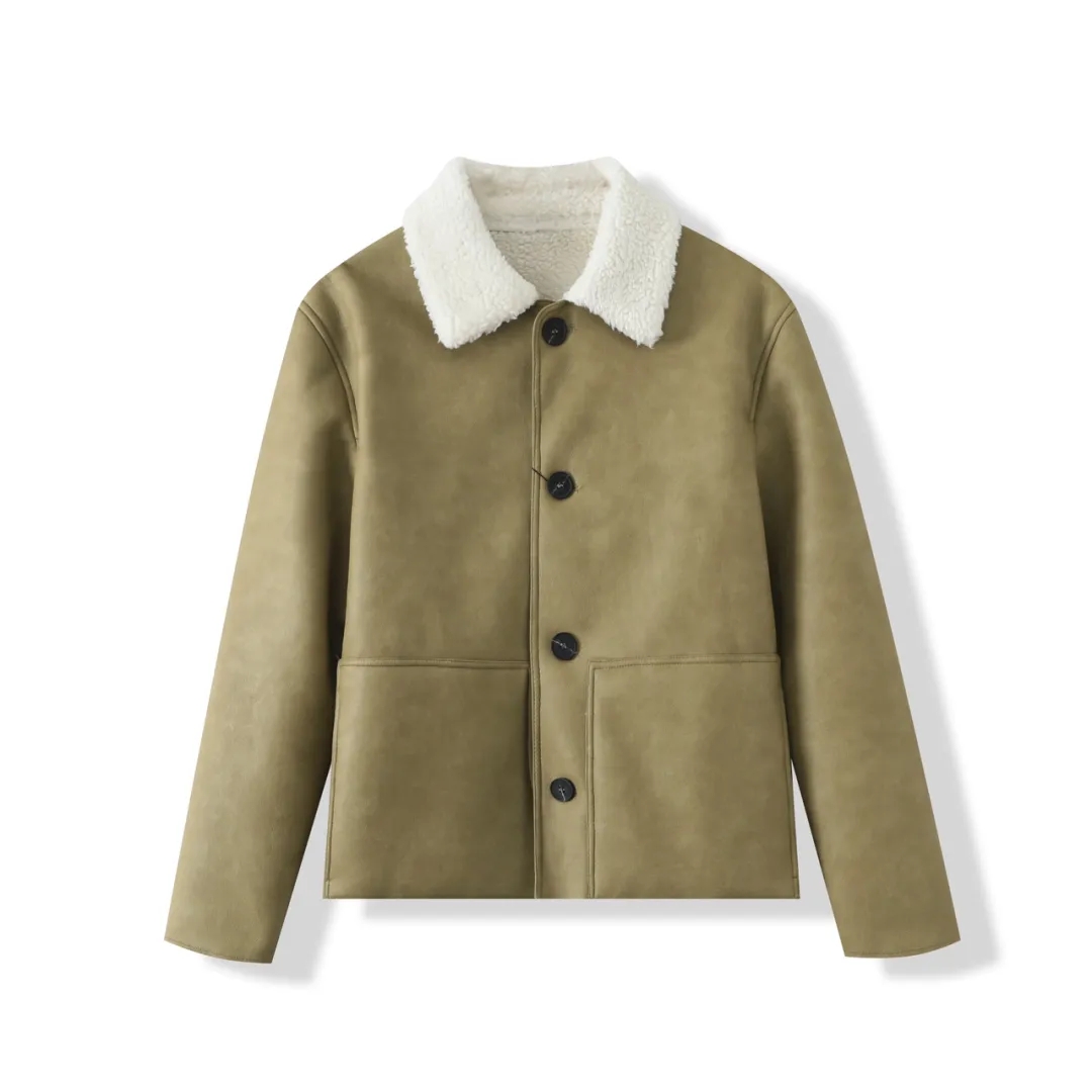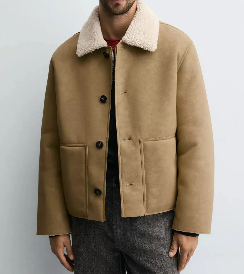 新款皮毛美式一体复古男士外套2025夹克冬季保暖加绒防寒加厚