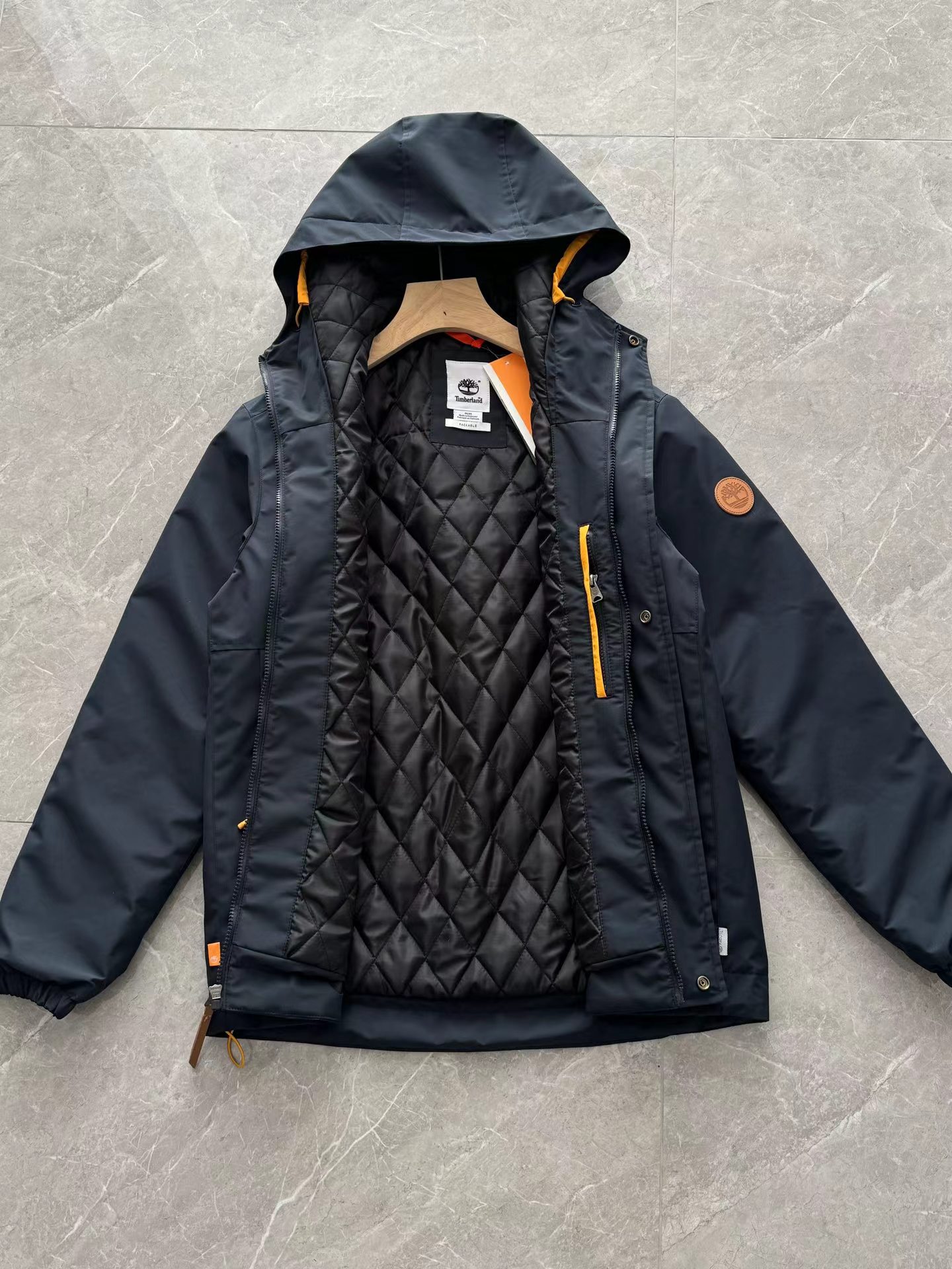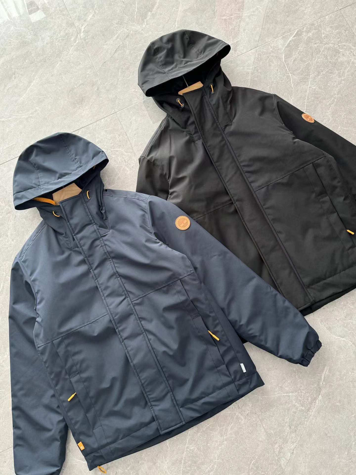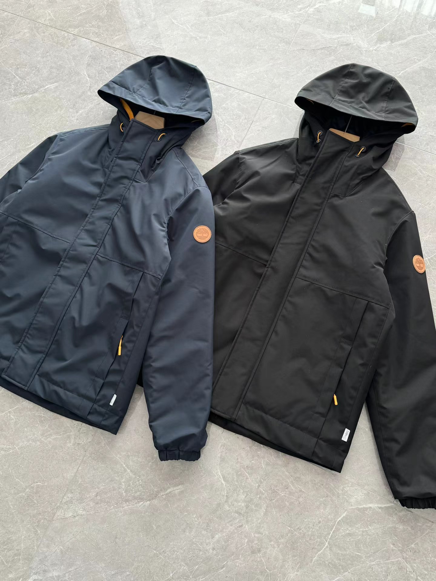 重磅棉服男士休闲连帽棉衣外套!利落剪裁,怎么搭都好看,连帽设计可调节抽绳 两边隐藏式插袋拉链闭合 左臂logo皮标 彰显品牌魅力 袖口松紧设计 简约方便 内里左侧设有口袋 后背品牌图案刺绣特显档次 此款修身简约百搭 适合户外运动旅行休闲场合穿搭 ……高密面料:防风抗寒,户外通勤都能扛,细节满分:带帽设计+立体大口袋,实用又有型,双色系可选:深藏青沉稳百搭,纯黑酷感拉满,冬天就靠它撑场面,一件搞定保暖与潮流!
