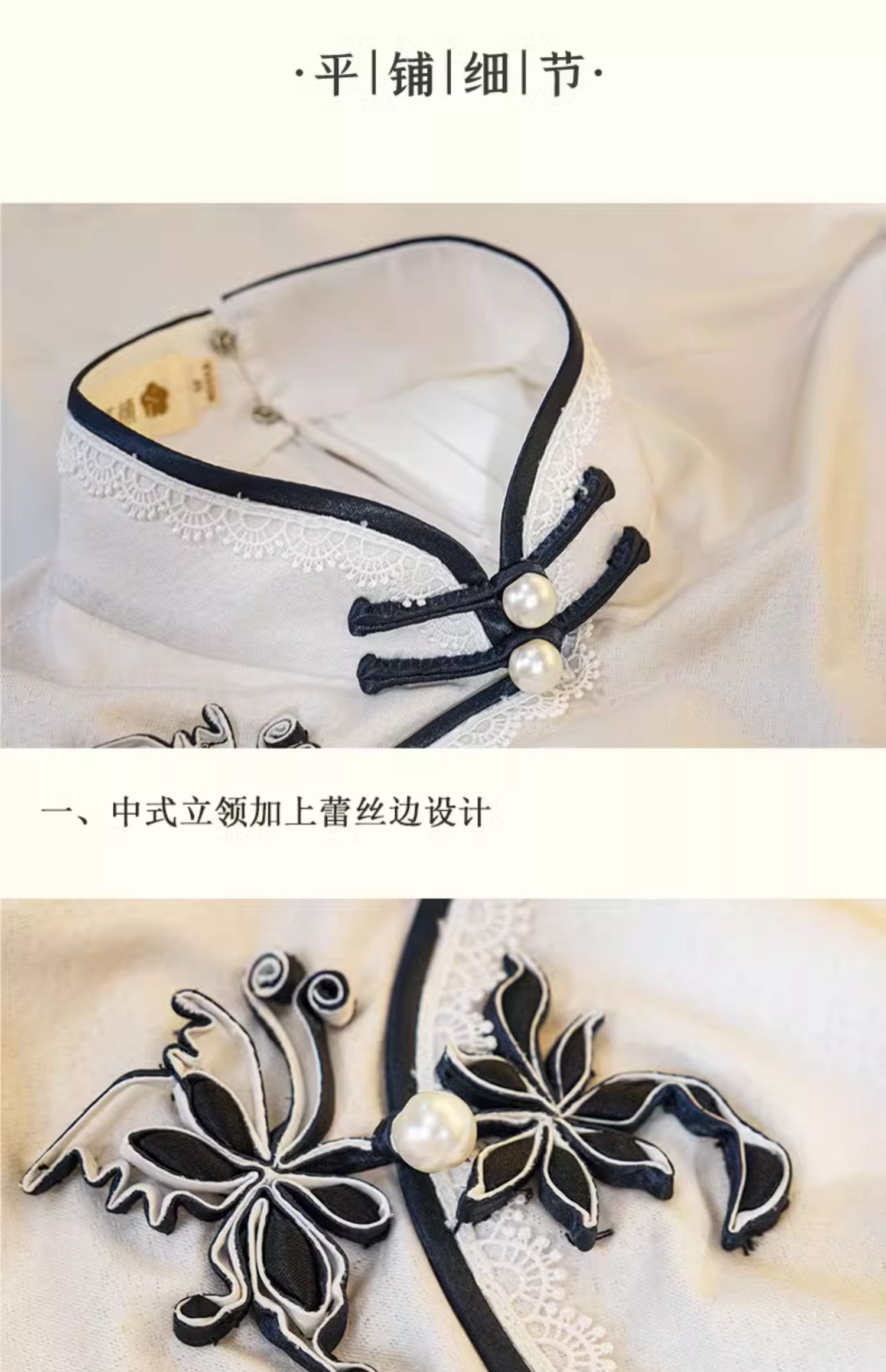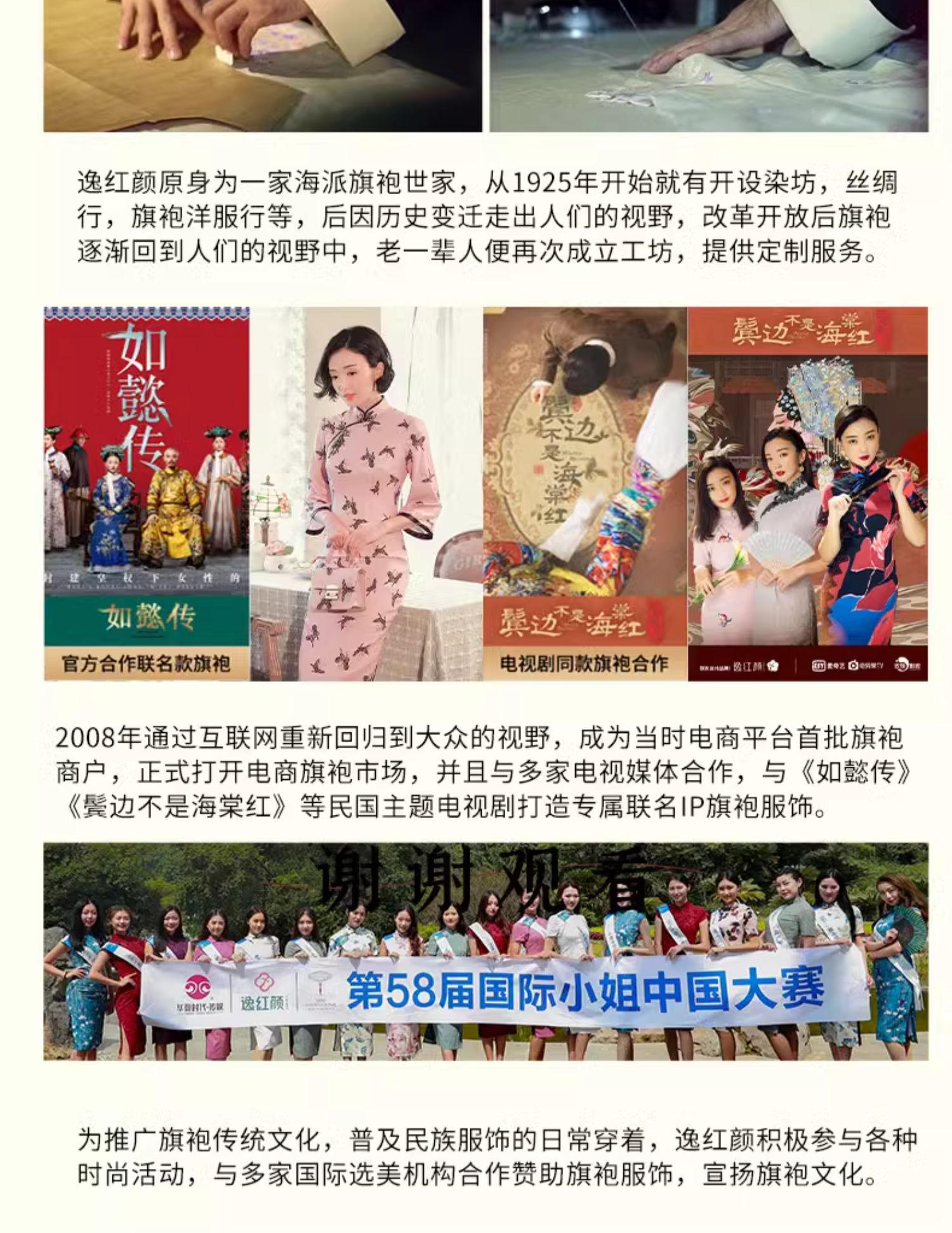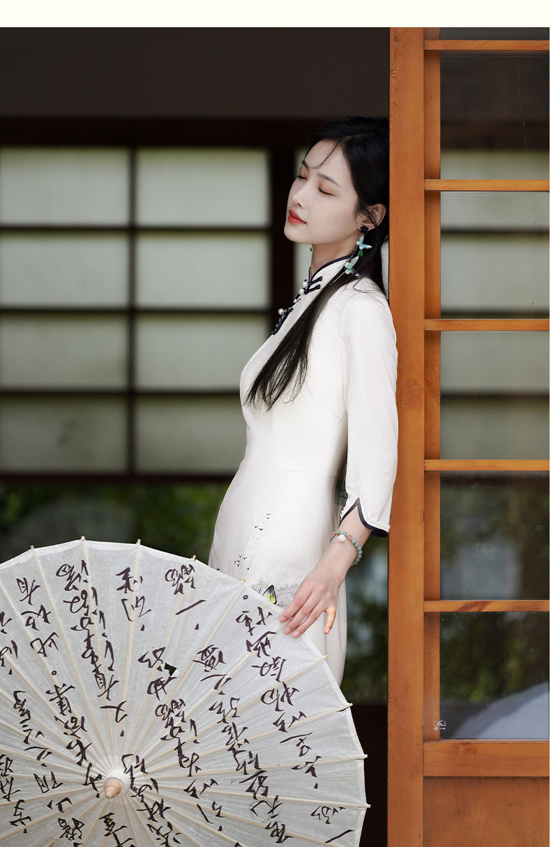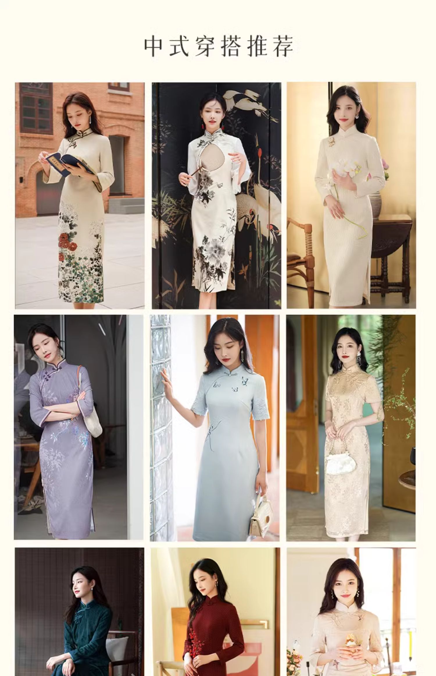 上海逸红颜筠蝶2025年春装新品醋酸针织手绘竹蝶图中袖旗袍