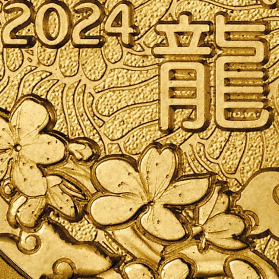 纪念币正面的“龙”没有采用中国龙一贯威严大气的风格,转而用更加时尚轻奢的可爱风格,更加平易近人。