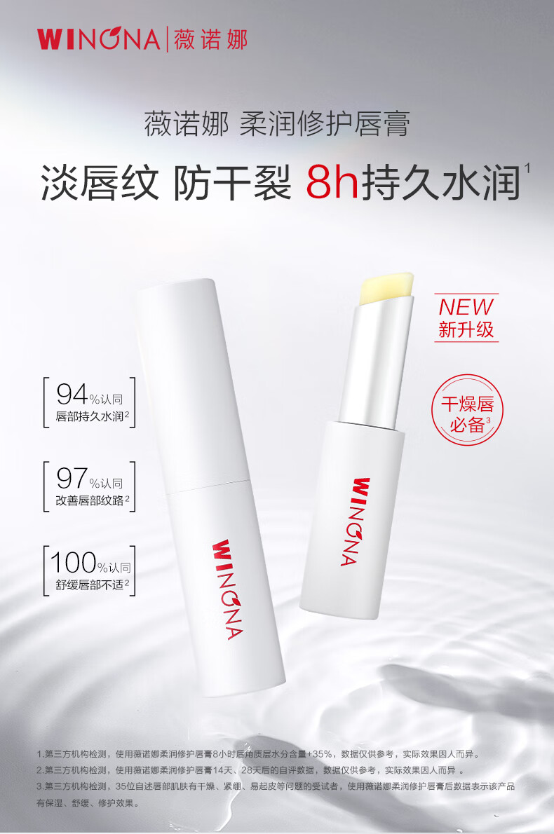 【官方授权】薇诺娜2.6g柔润修护唇膏2支装 改善唇部干纹