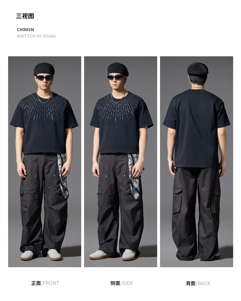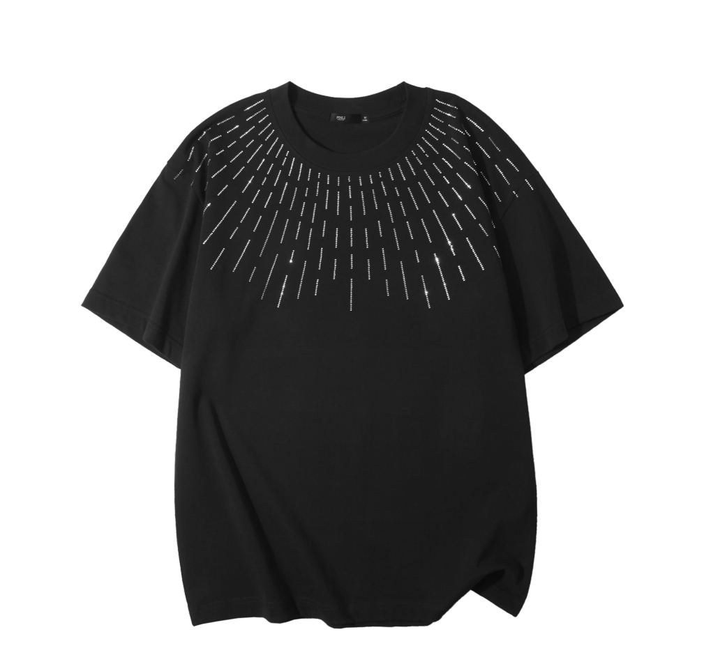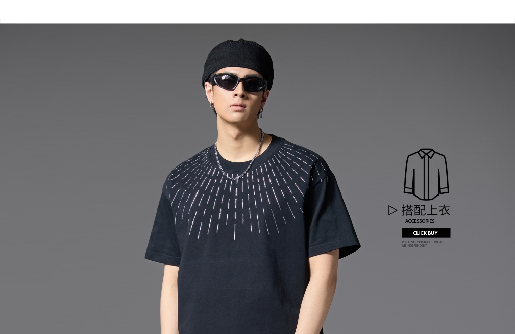PINLI品立2025春夏新款烫钻休闲短袖T恤男宽松重磅纯棉潮牌体恤衫BG252111011