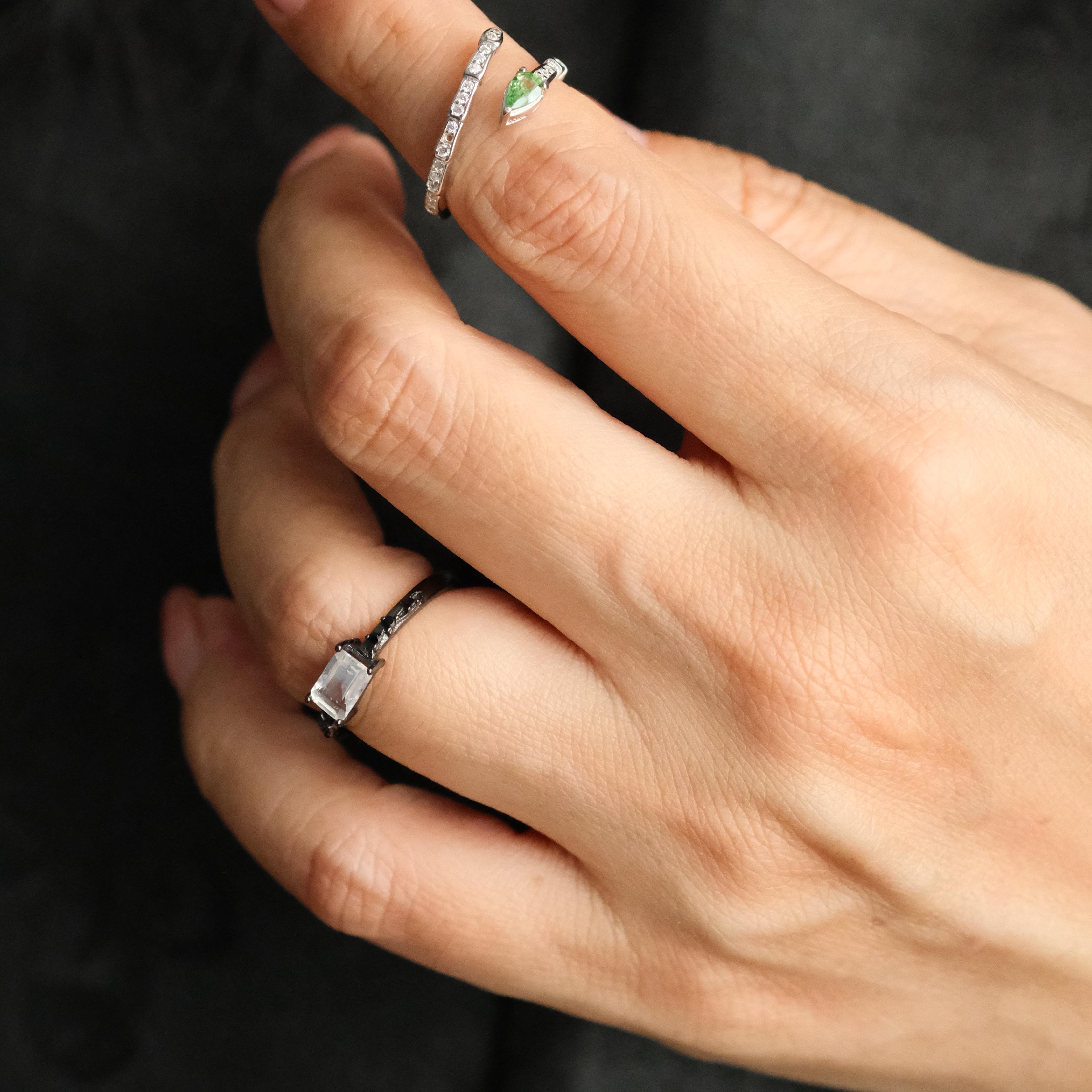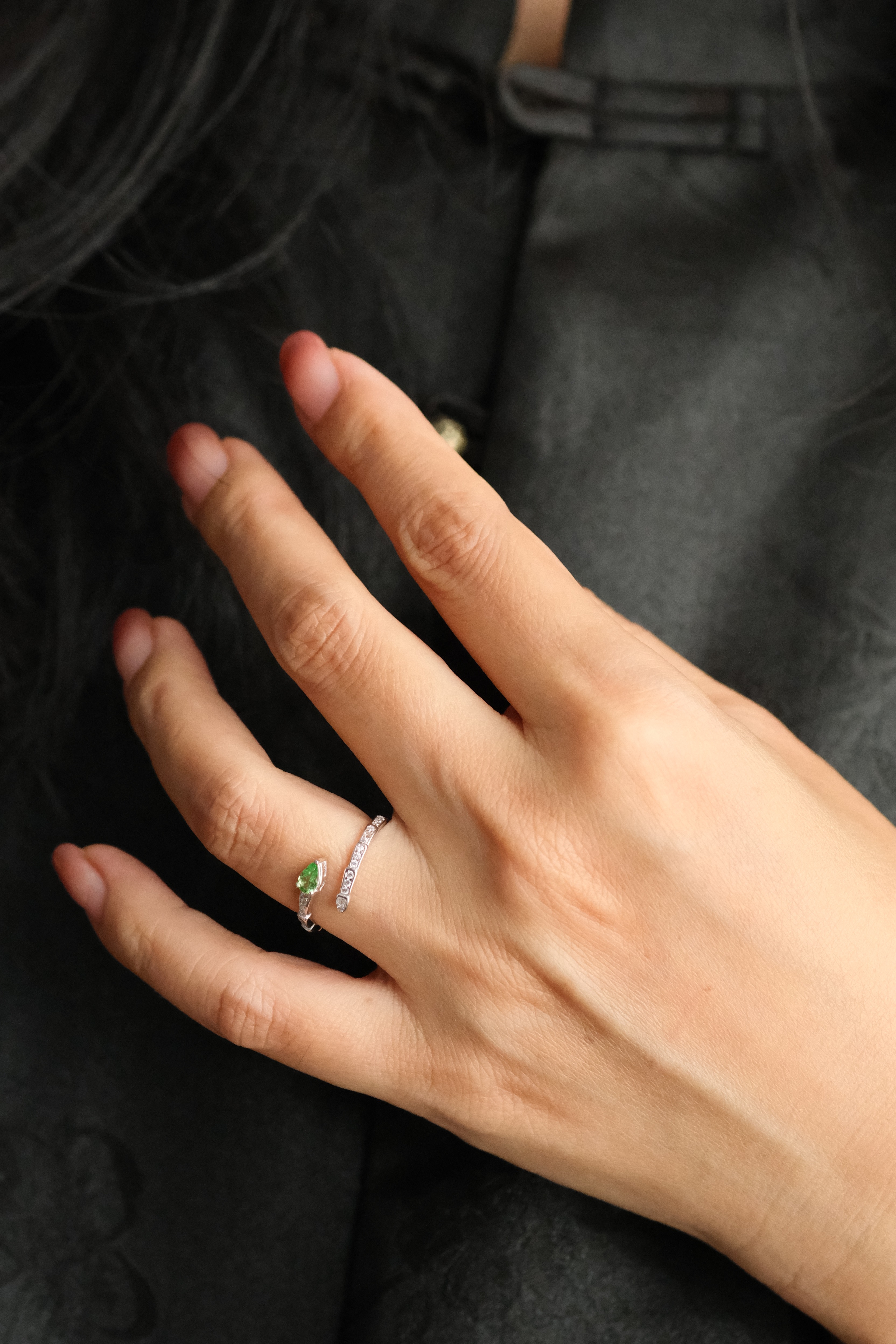 天然沙弗莱纯银镶嵌蛇形开口戒指 售完无