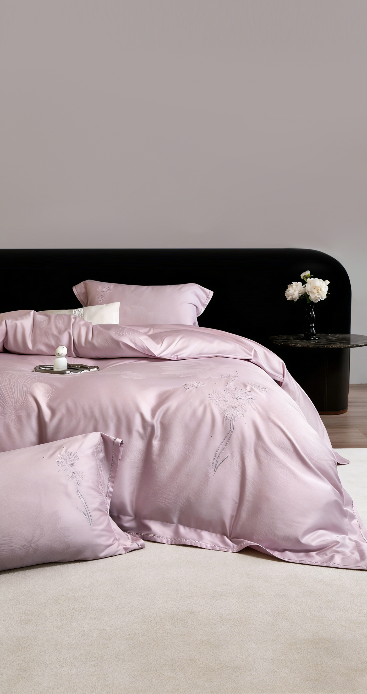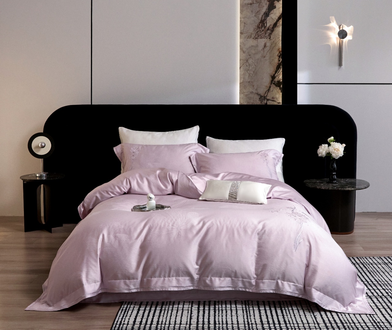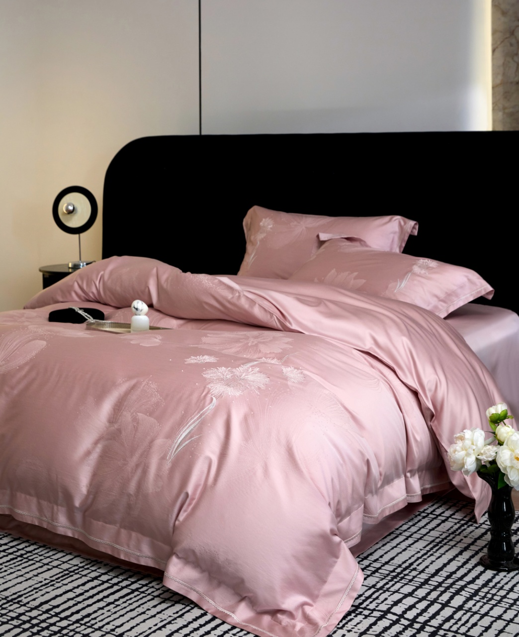 浅粉色基调温柔不张扬,适配现代简约、法式浪漫等多种家居风格。宽边圆角设计搭配精密包边工艺,细节处彰显品质;提花与绣花的双重工艺碰撞,让床品兼具实用性与装饰性,既是安睡伴侣,亦是卧室软装的点睛之笔,轻松提升空间格调。