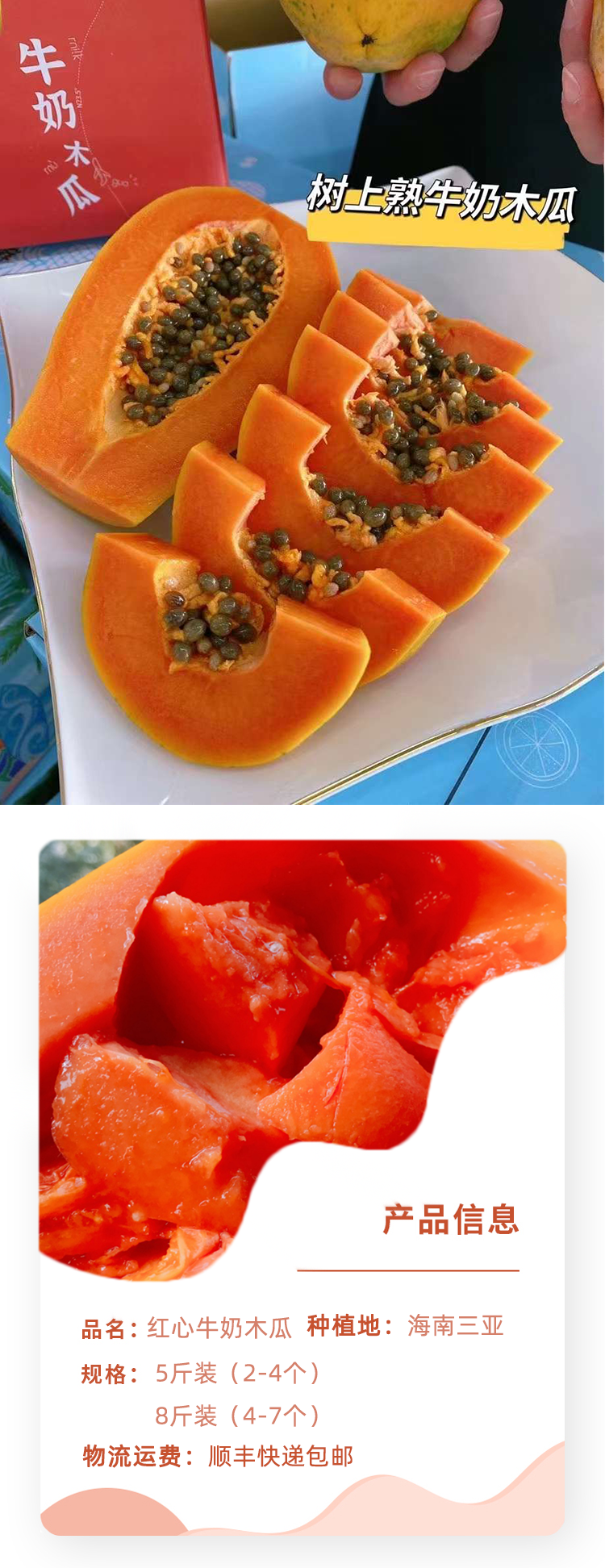海南树上熟红心牛奶木瓜顺丰包邮下单从三亚发货