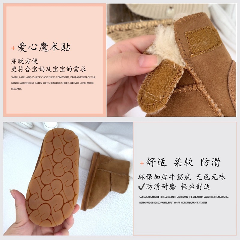 冬季童靴儿童雪地靴羊皮毛一体魔术贴保暖防滑婴儿学步鞋宝宝鞋