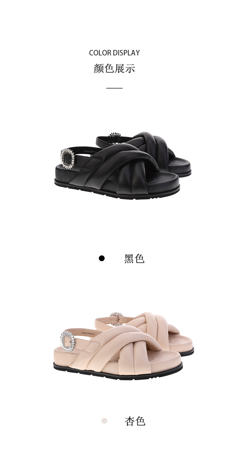 sheme柔软羊皮加厚泡棉水晶扣件舒适休闲条带女士凉鞋可定制