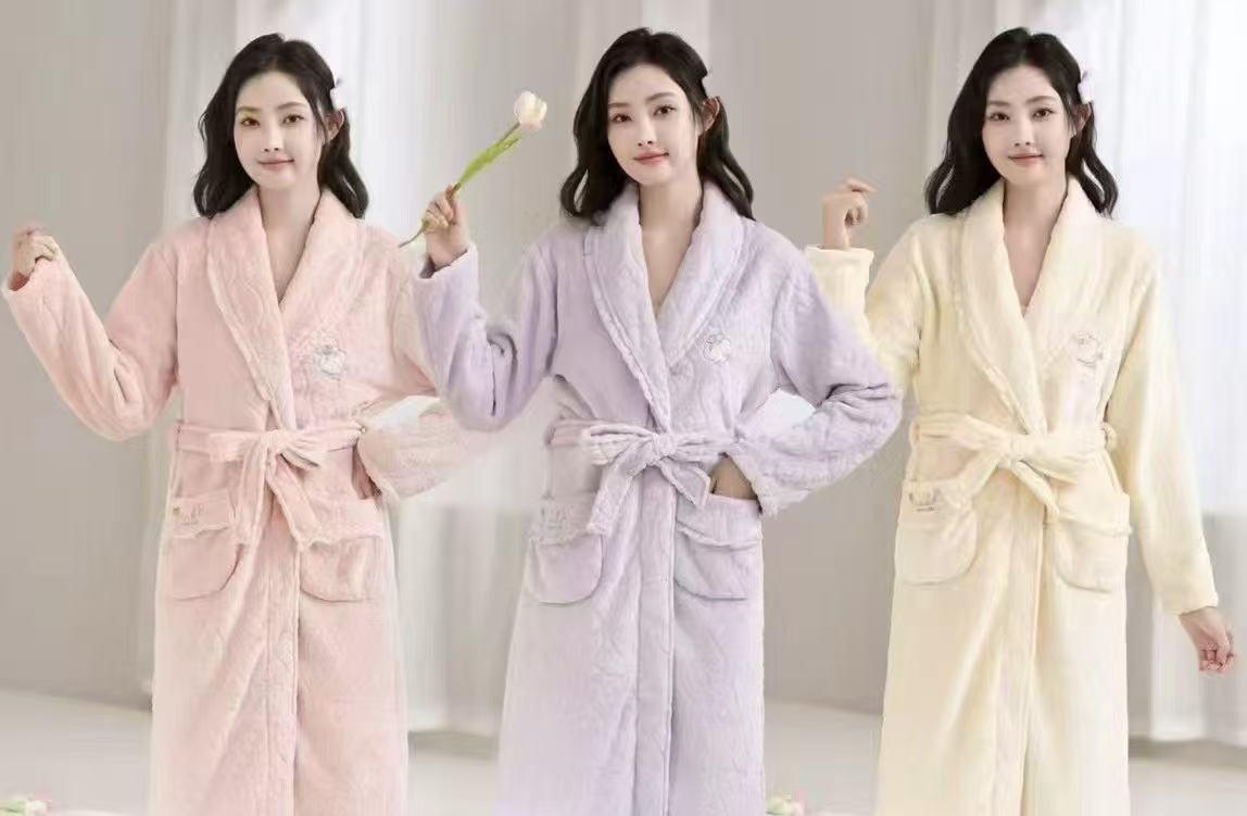 双面法兰绒剪花女士睡袍软糯舒适1415765