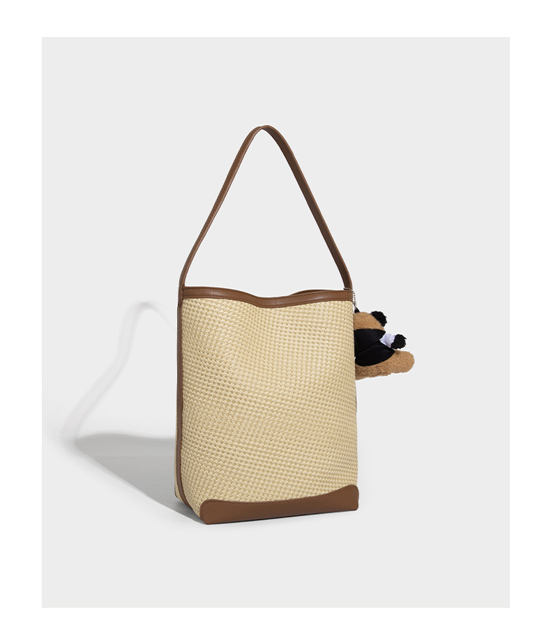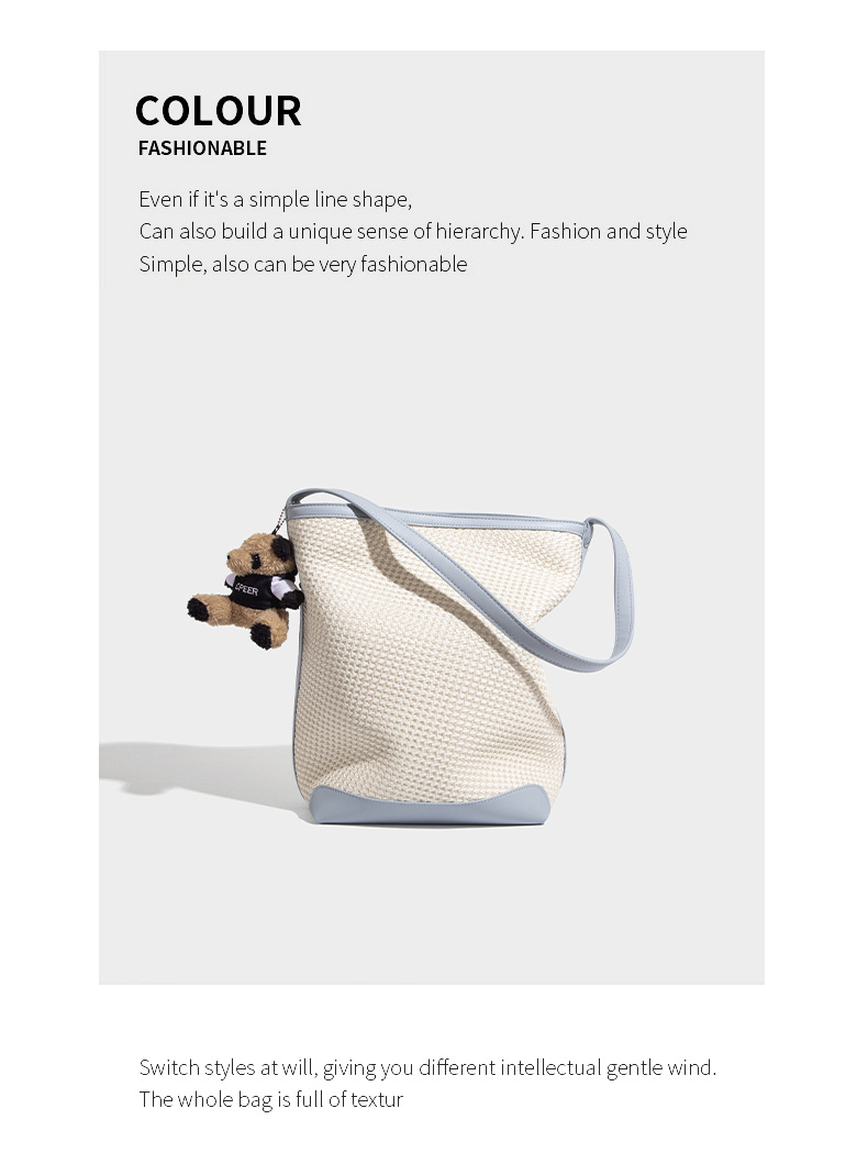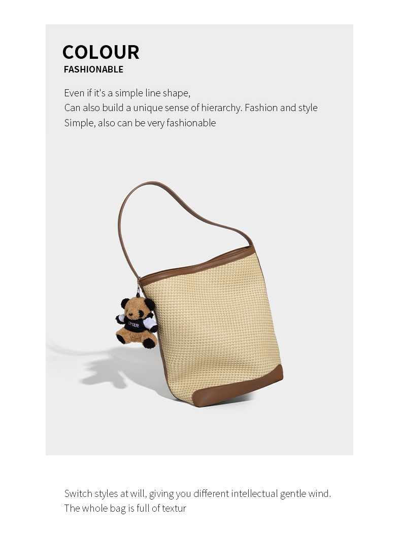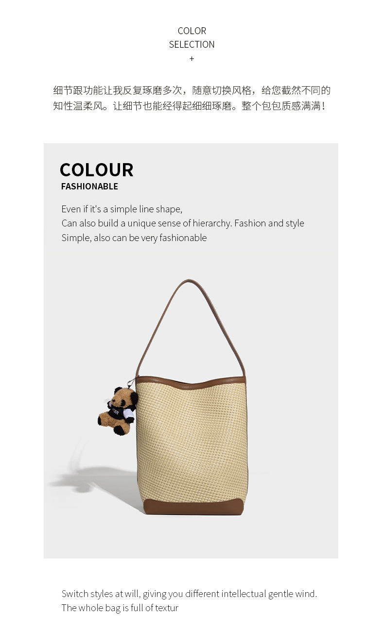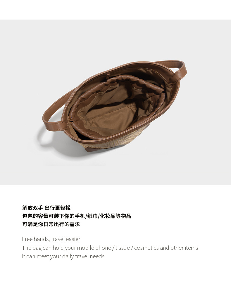 【预售3天】韩系草编包女2025新款时尚洋气撞色编织水桶包百搭斜挎包ASL-7272-6