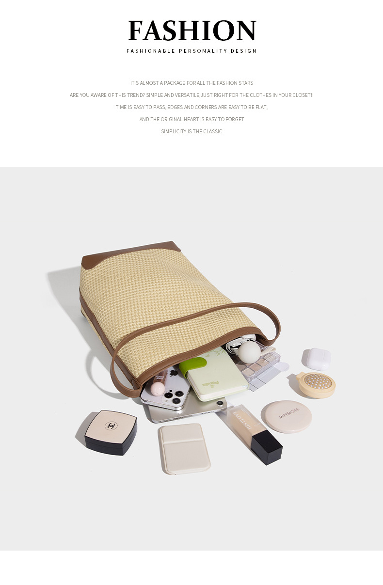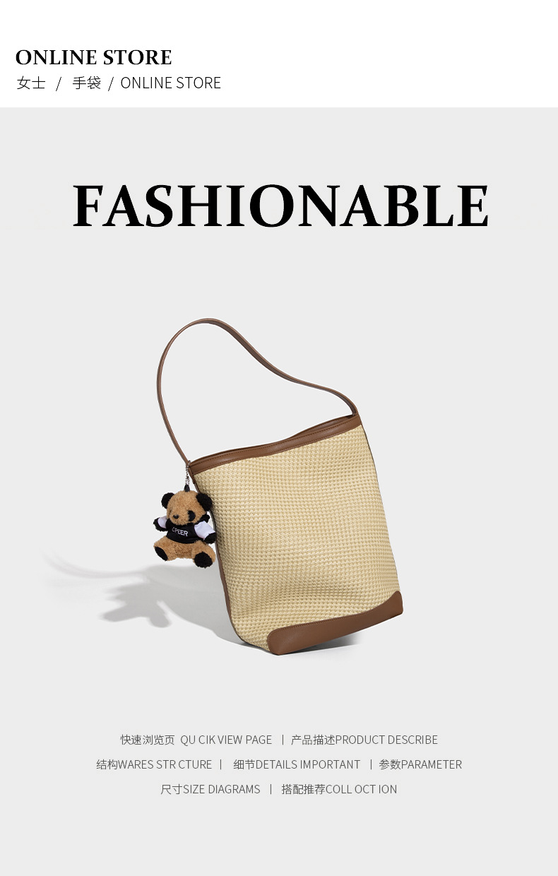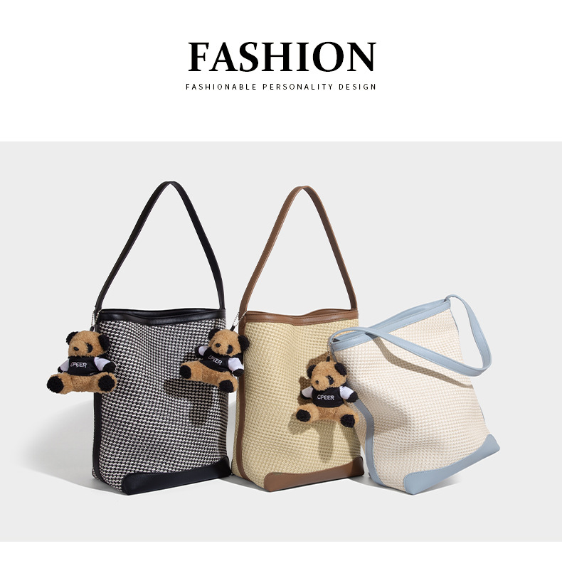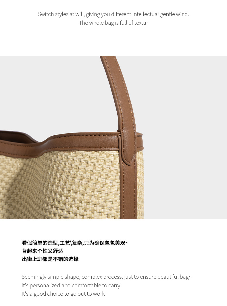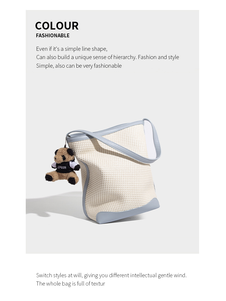 【预售3天】韩系草编包女2025新款时尚洋气撞色编织水桶包百搭斜挎包ASL-7272-6