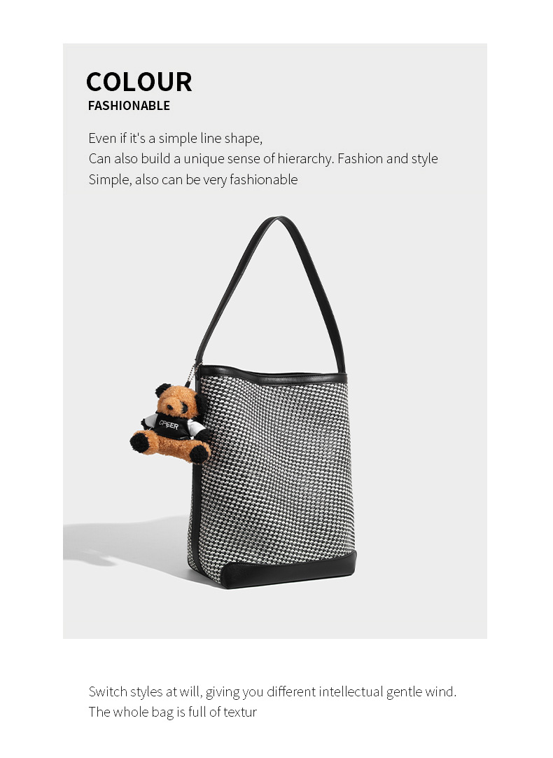 【预售3天】2025新款欧美时尚包包斜挎包抽绳拼接手提水桶包IY8689