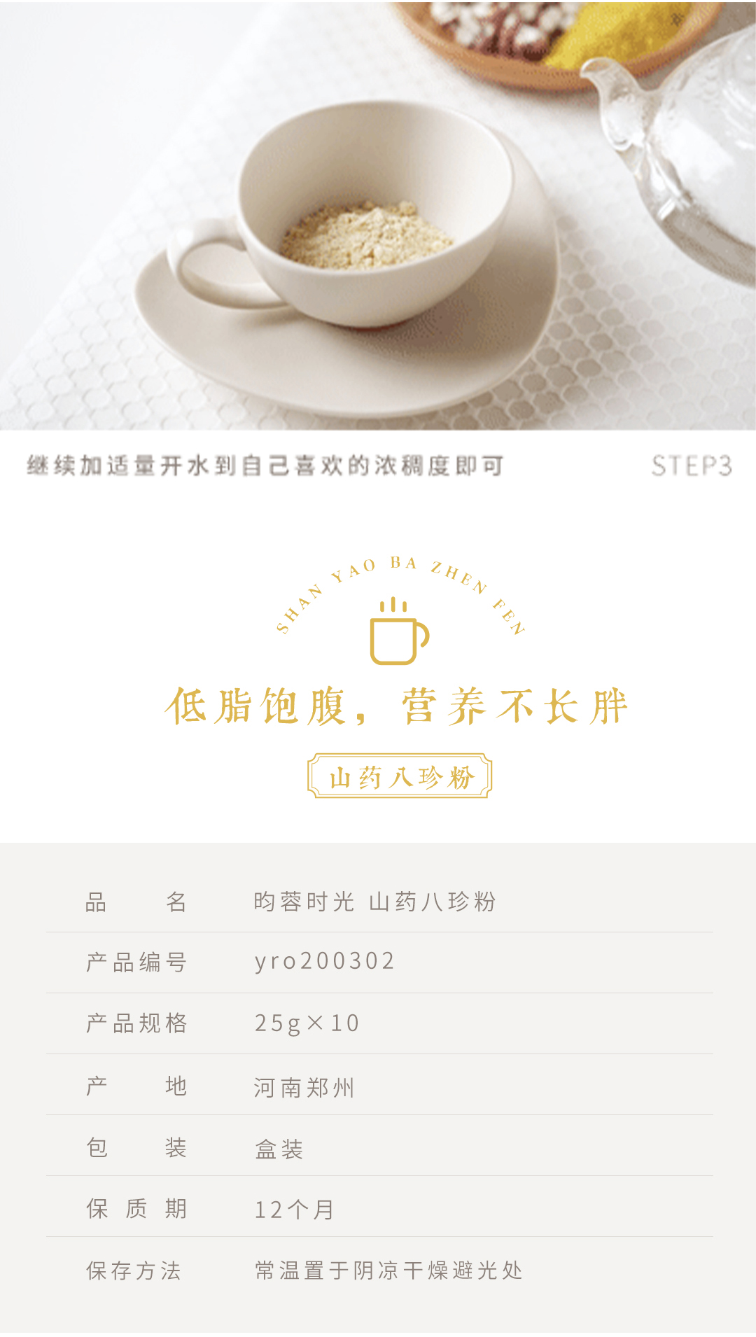 【昀蓉时光· 山药八珍粉】(25g*10条/盒) 粉质细腻· 口感柔滑· 营养代餐