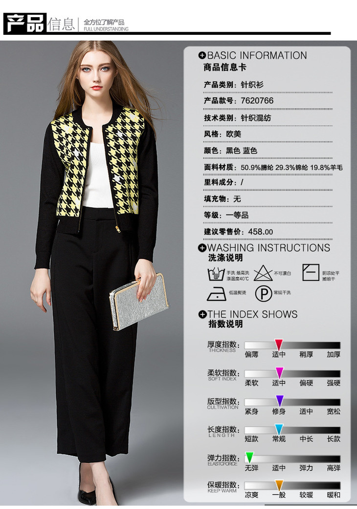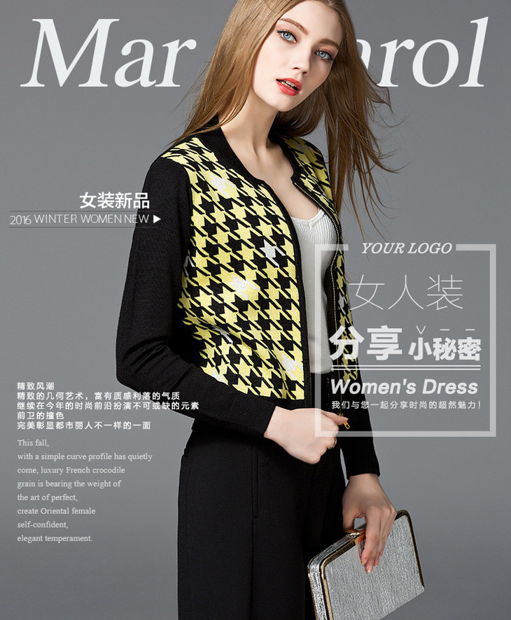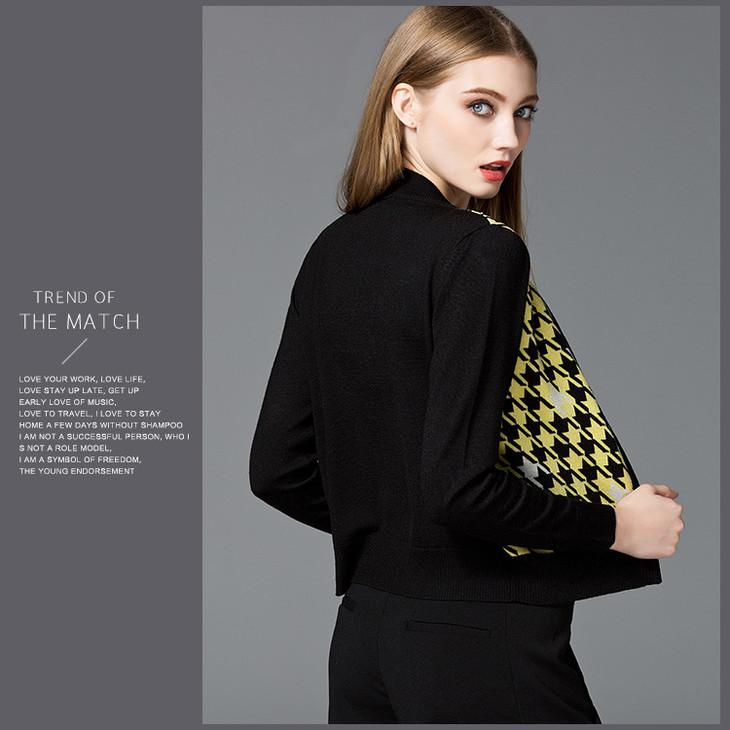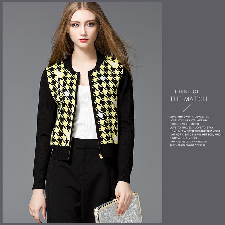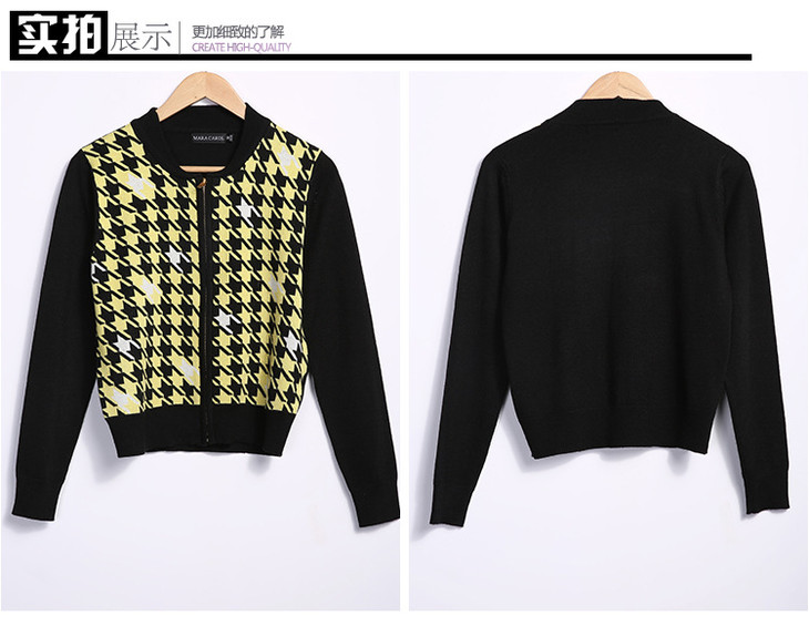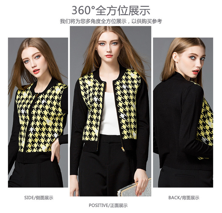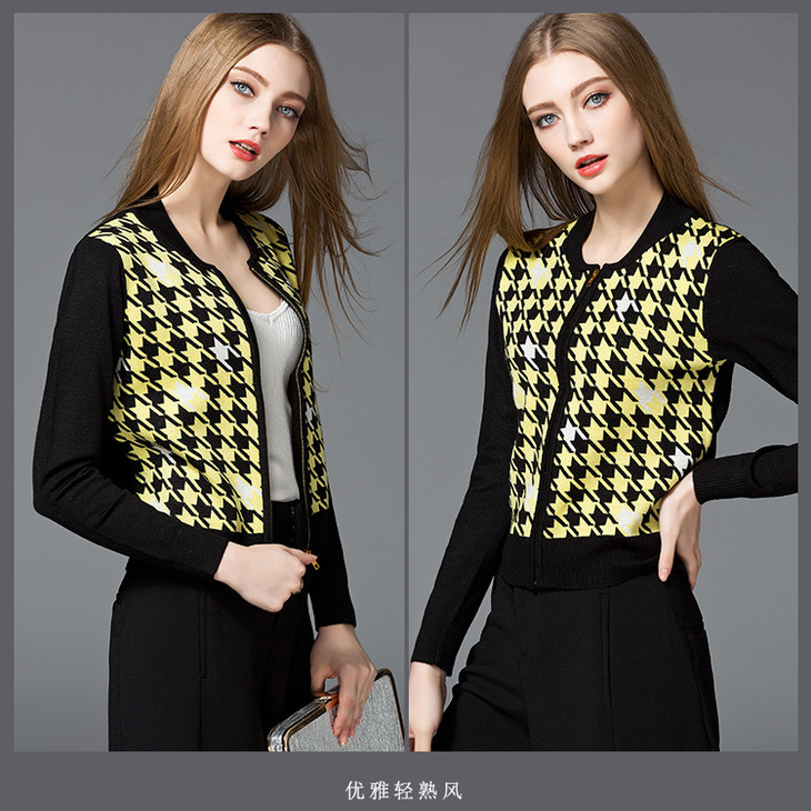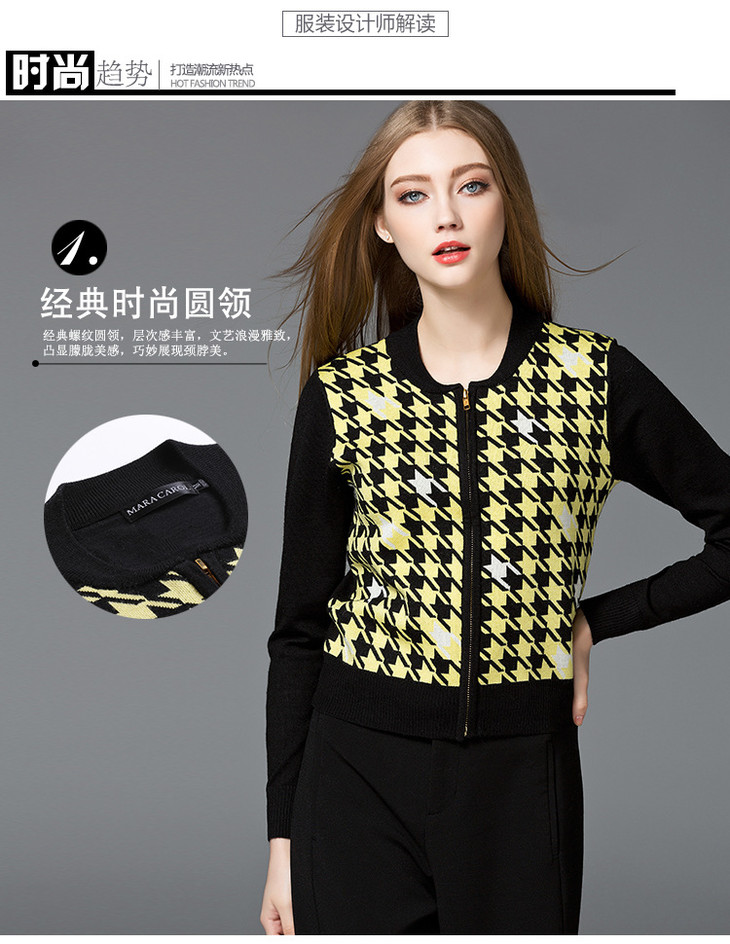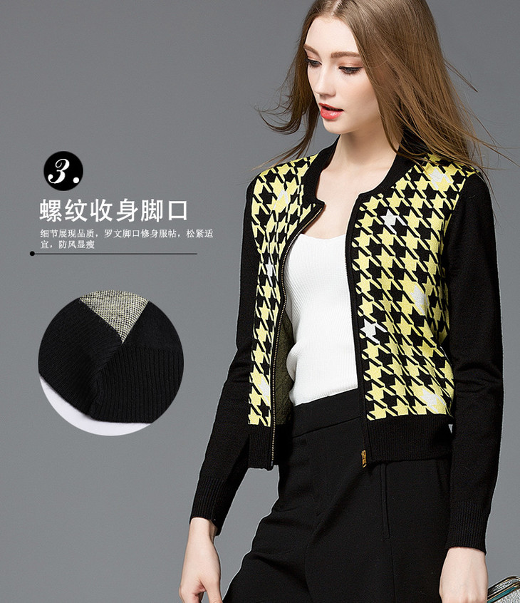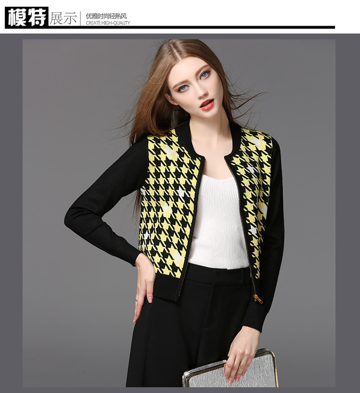 【外套女】秋季新款精品 女装欧美千鸟格毛衣小外套针织开衫