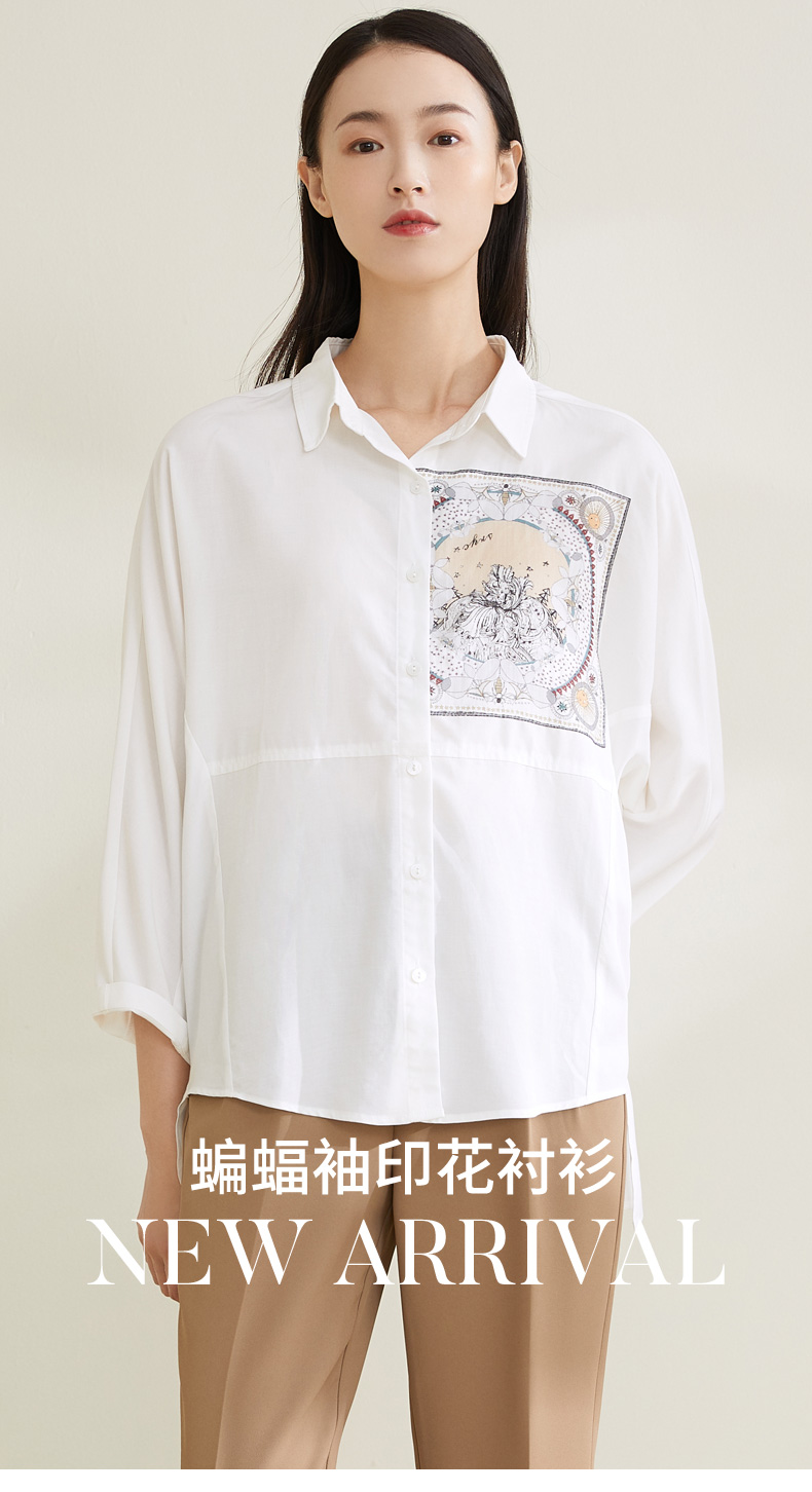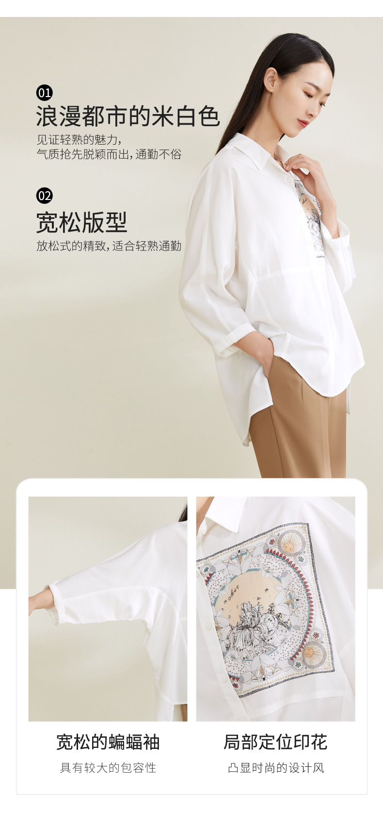 玳莎宽松蝙蝠袖衬衫显瘦廓形慵懒风 通勤休闲印花衬衣 CA31314