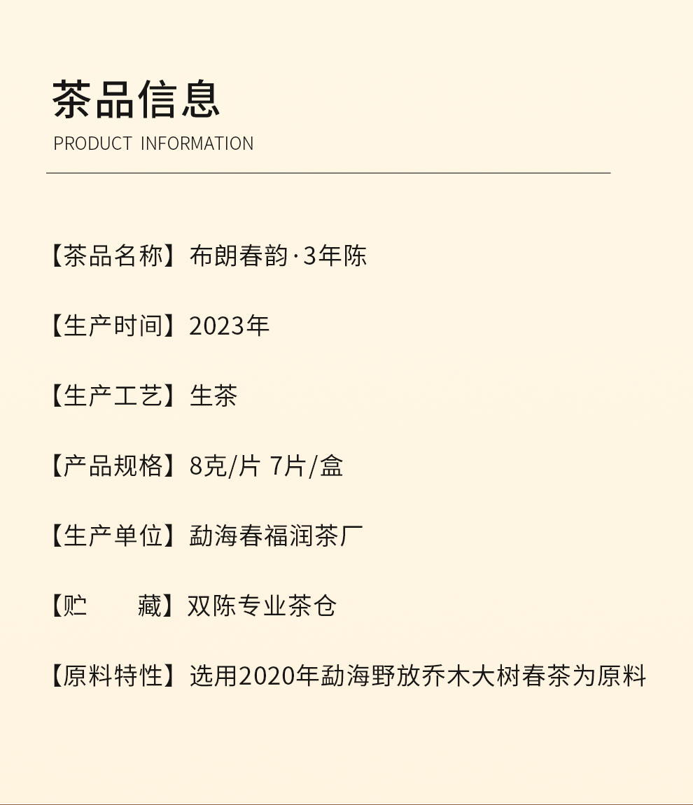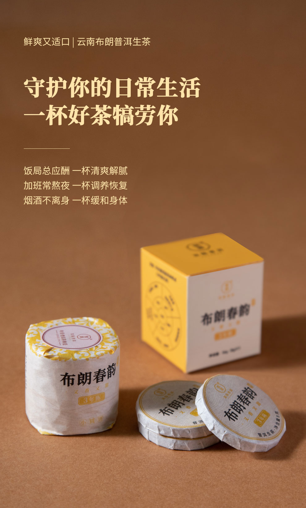 2023年布朗春韵云南勐海乔木古树春茶小圆饼8克/片便携随身茶饮56克/盒