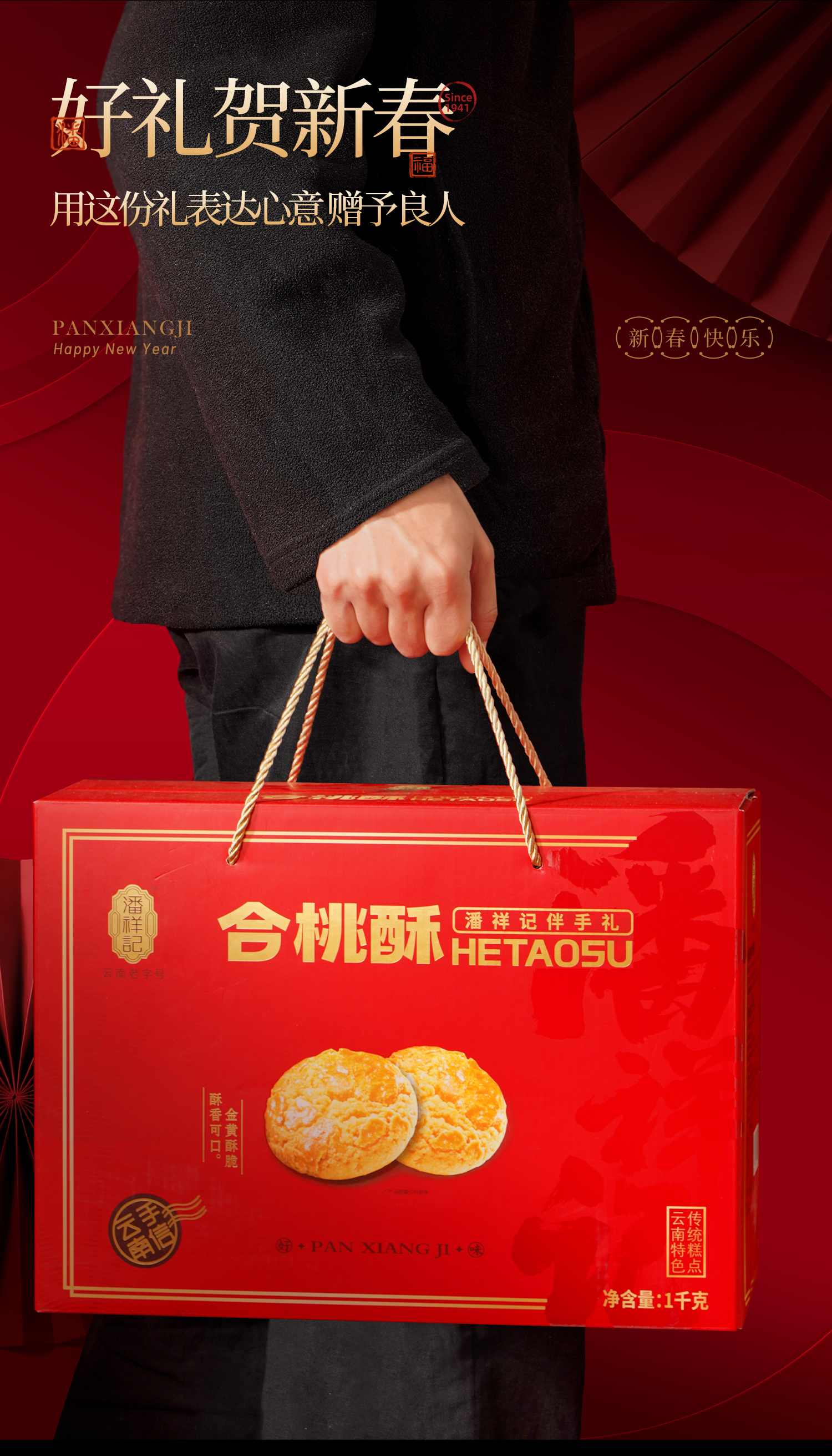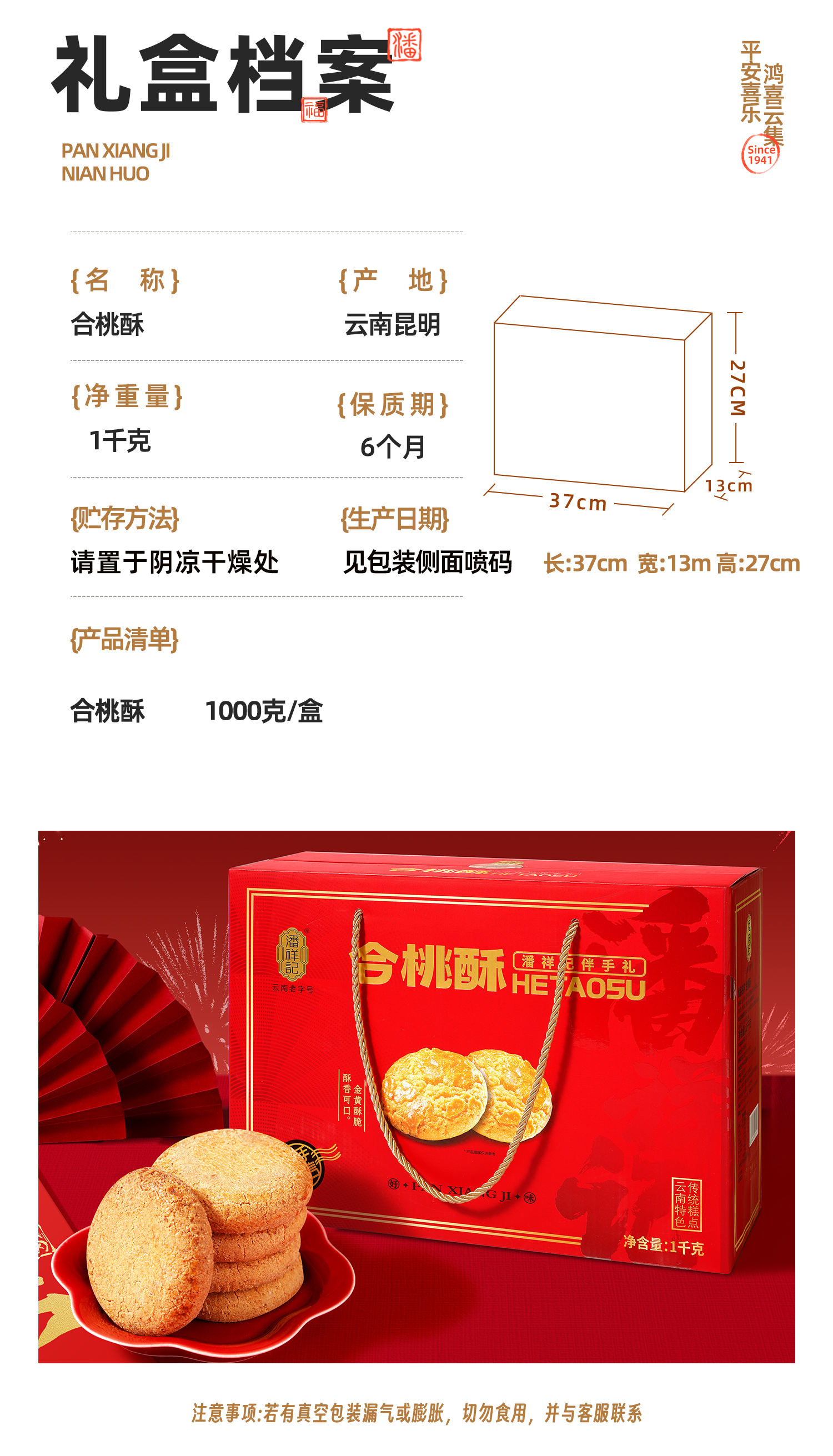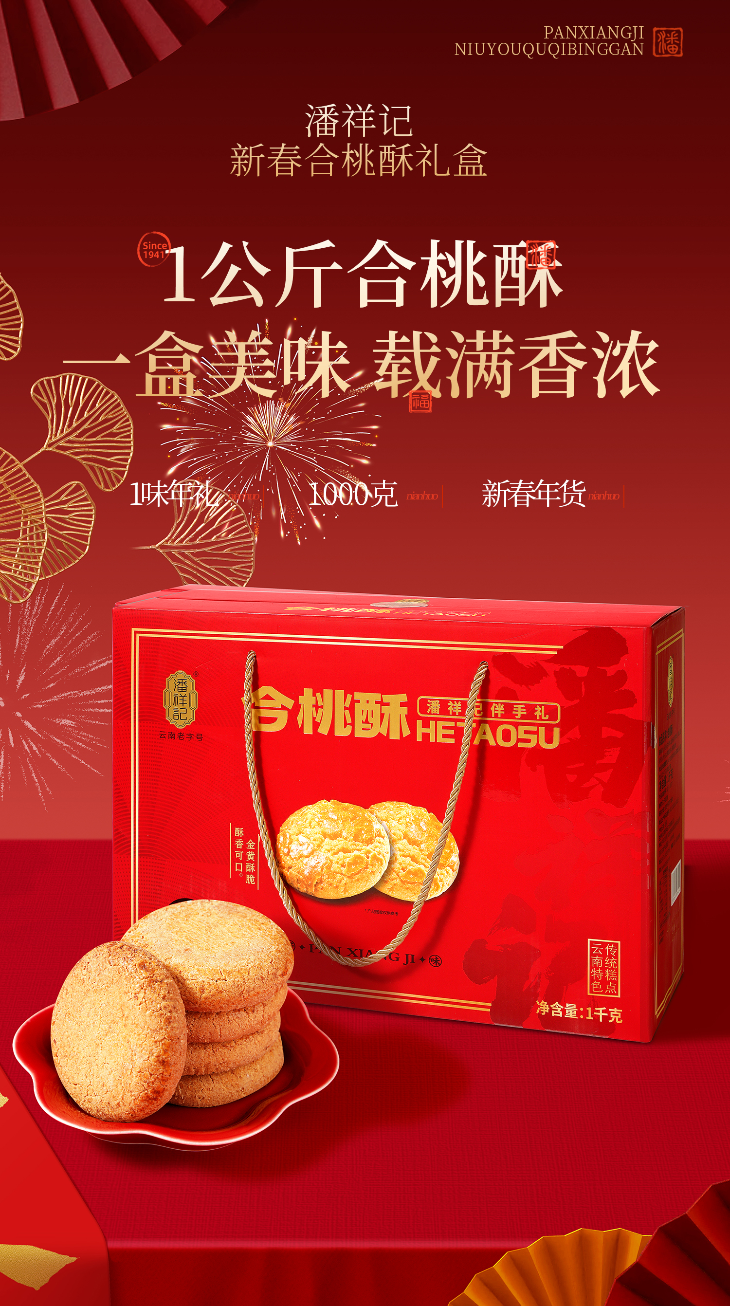 潘祥记官方旗舰店【1000g克合桃酥】年货礼盒