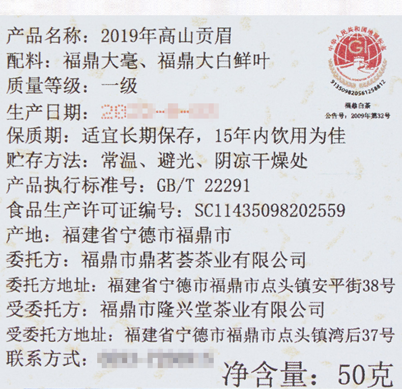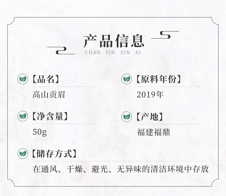 鼎茗荟丨高山贡眉 福鼎白茶 一级 2019年原料 50g