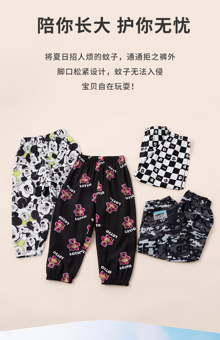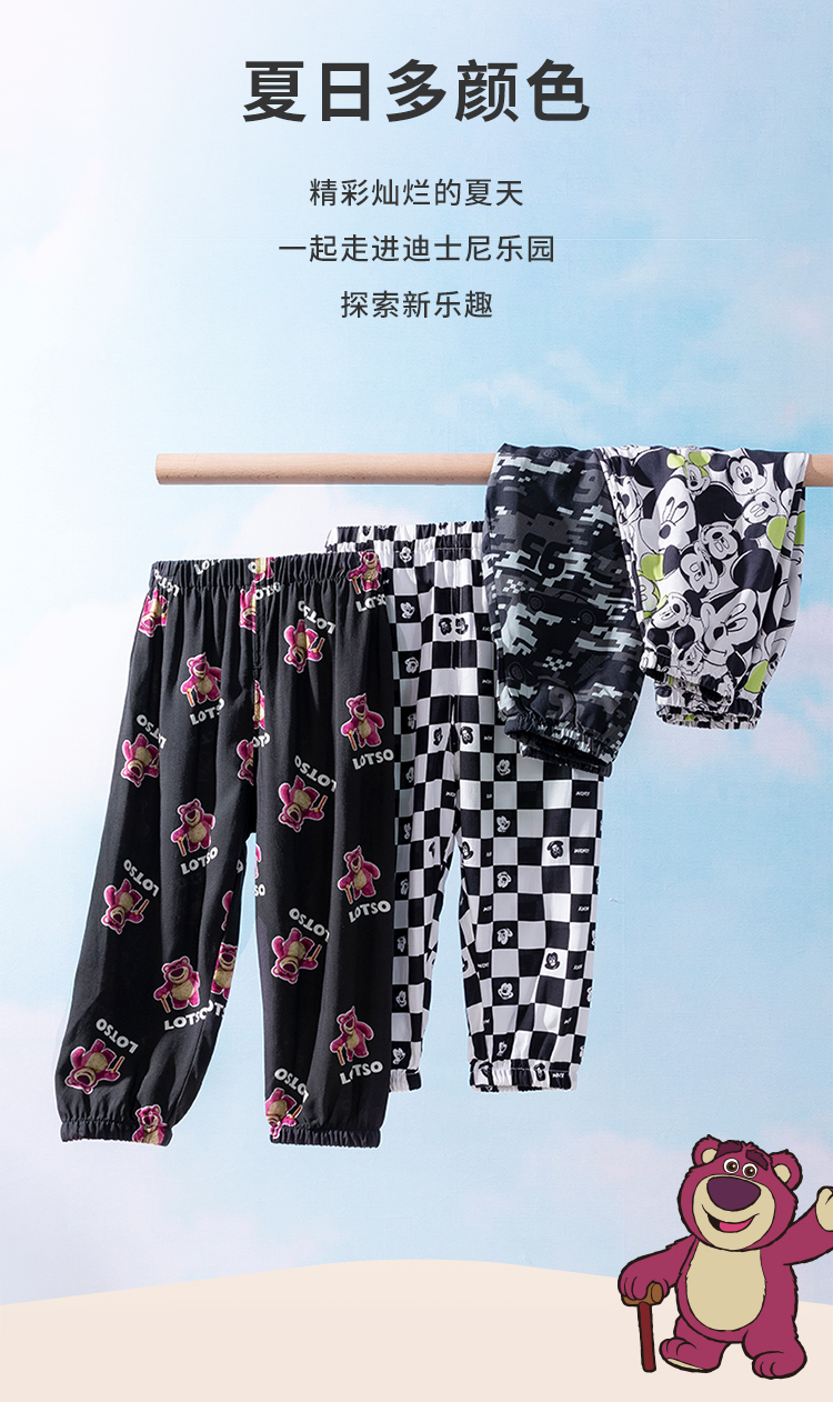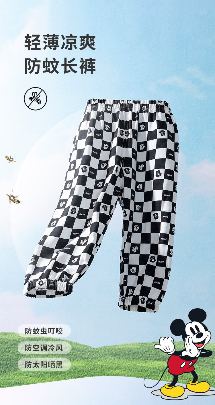 【商场同款】迪士尼童装男童防蚊裤夏季清爽轻薄草莓熊米奇格子时尚潮搭空调裤