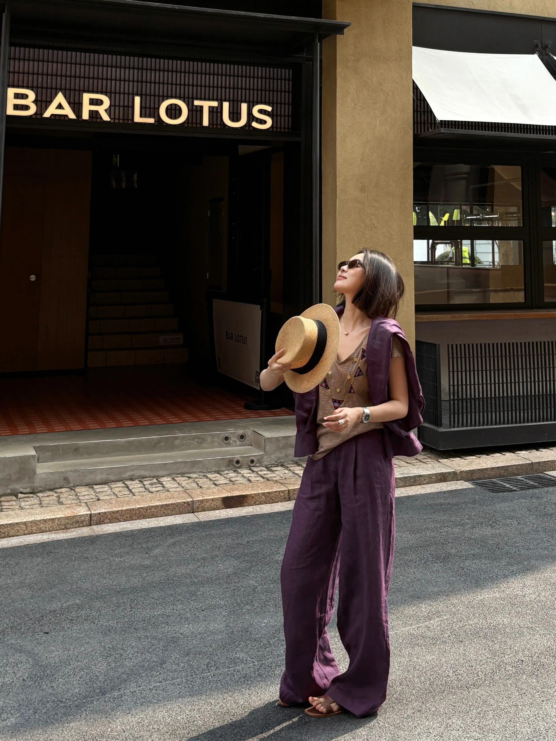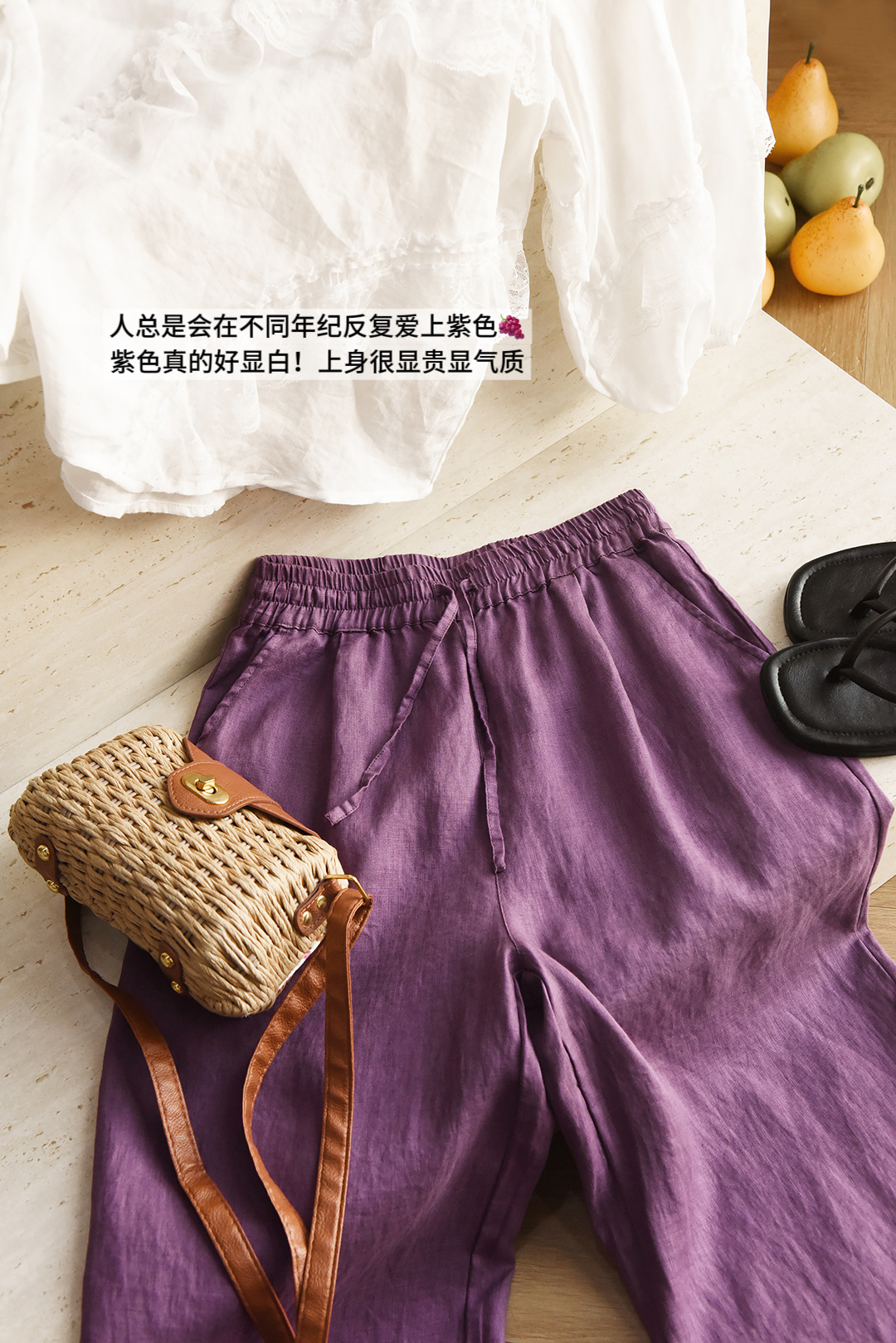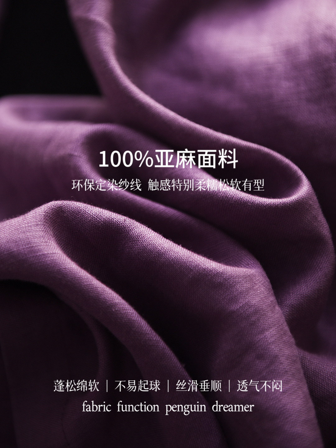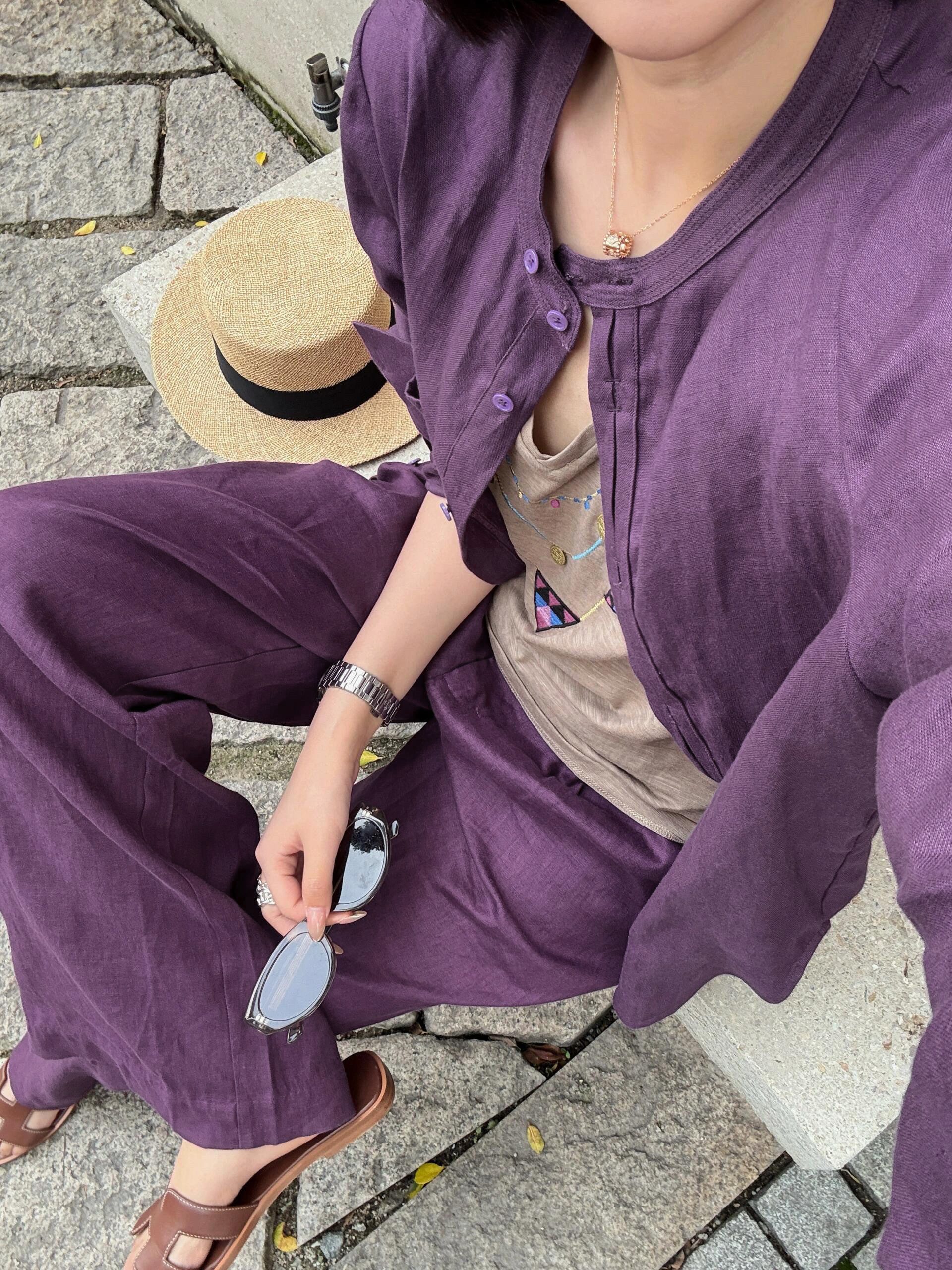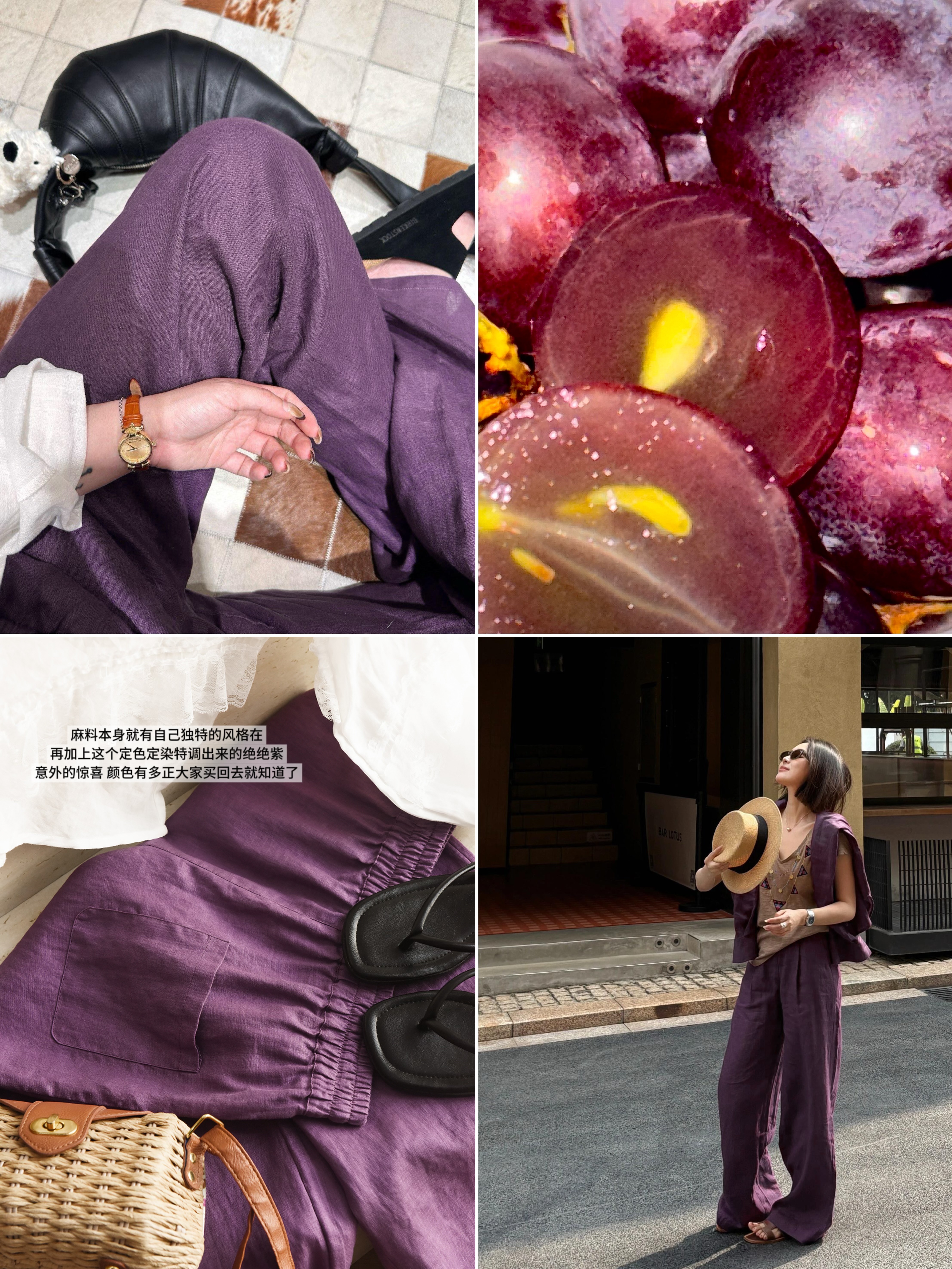 100%纯进口比利时亚麻✔纱线织面更紧实,触感更细腻没有扎感。独有的植物染葡萄紫~上身白三度!舒适浑然天成的高级感,巨显贵显气质!