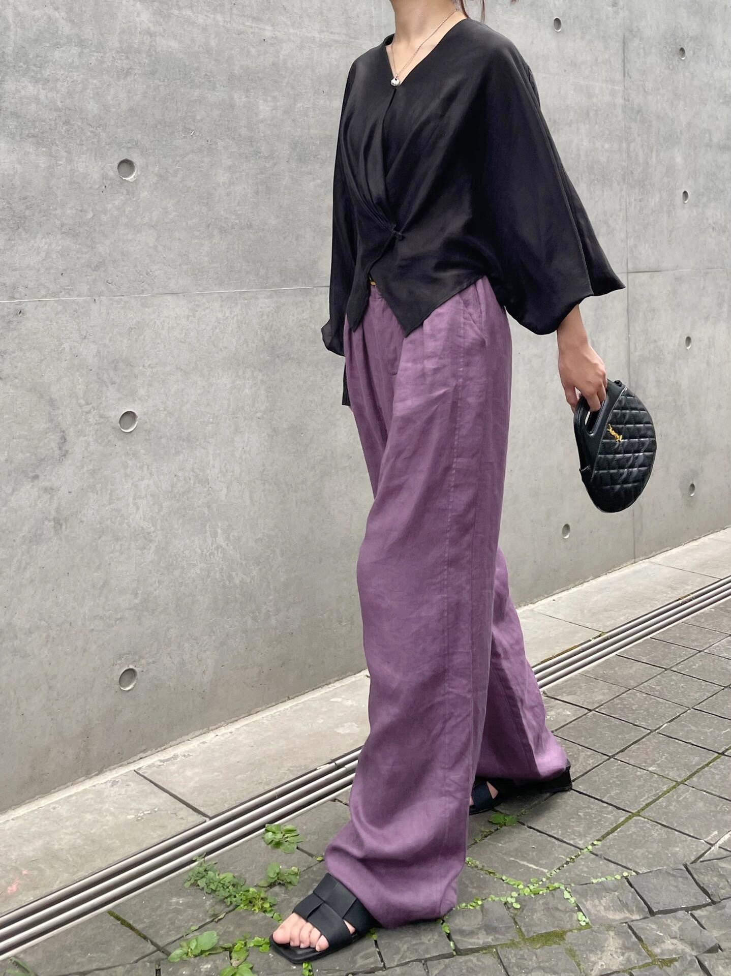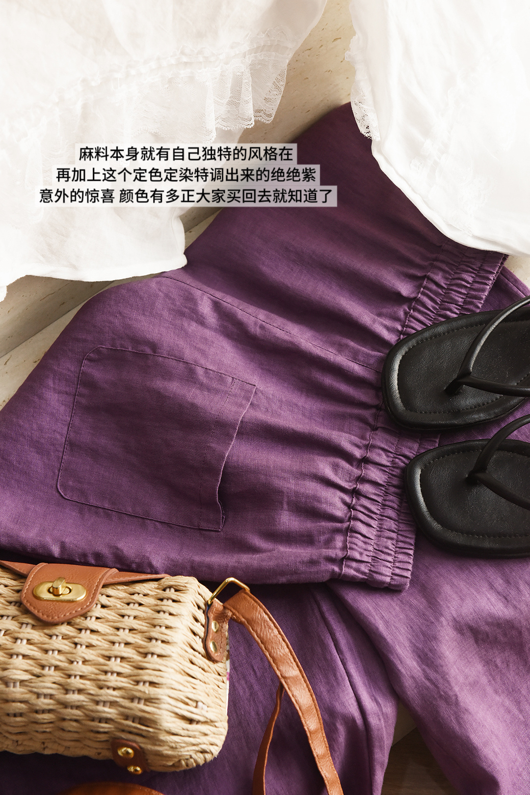 天然亚麻面料,真正的富贵褶!越看越有韵味,一整个舒适不沾身❗️定色定染特调出来的绝绝紫,真的好显白好洋气~时髦精一定要入手,整个比例特别好!视觉拉长双腿,藏肉显瘦。