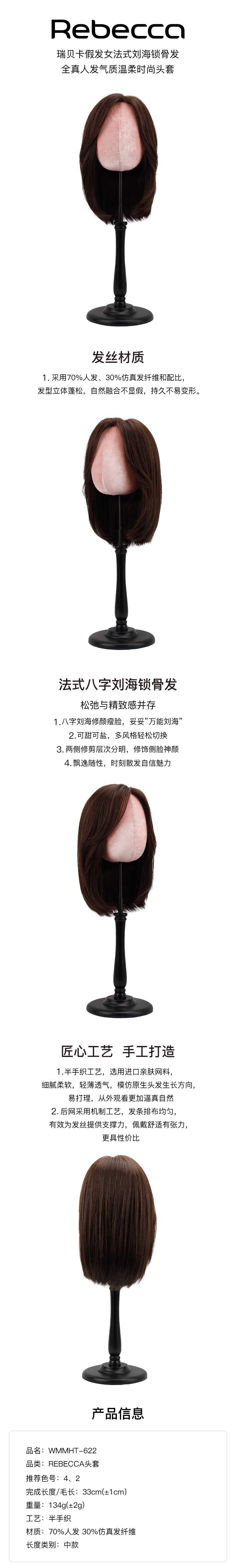 Rebecca瑞贝卡假发女法式刘海锁骨发全真人发气质温柔时尚头套