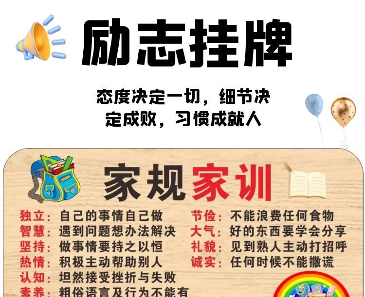 家训家规挂牌给孩子立规矩生日礼物8-18岁房间创意学习挂件免打孔