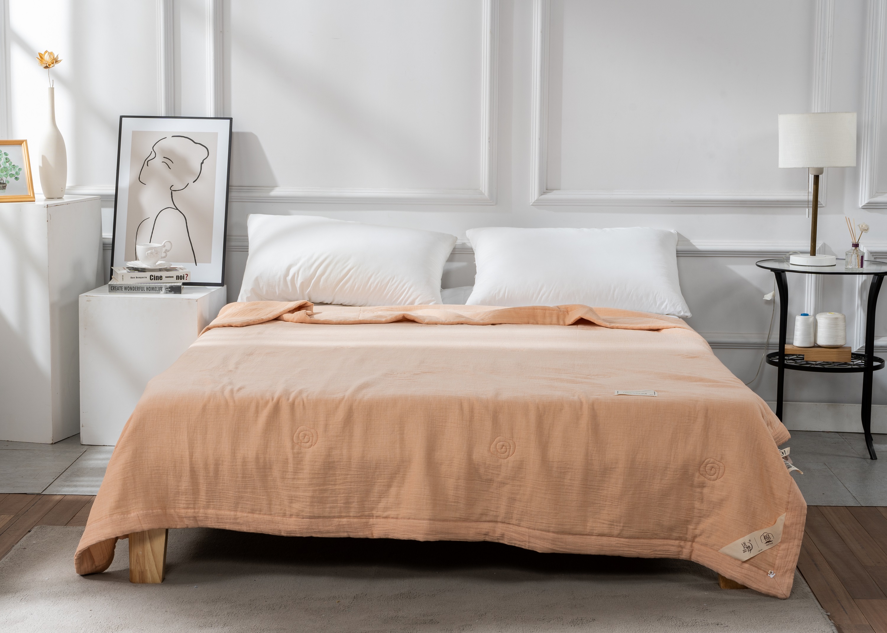 款式工艺:手工宽包边,暗合被套款