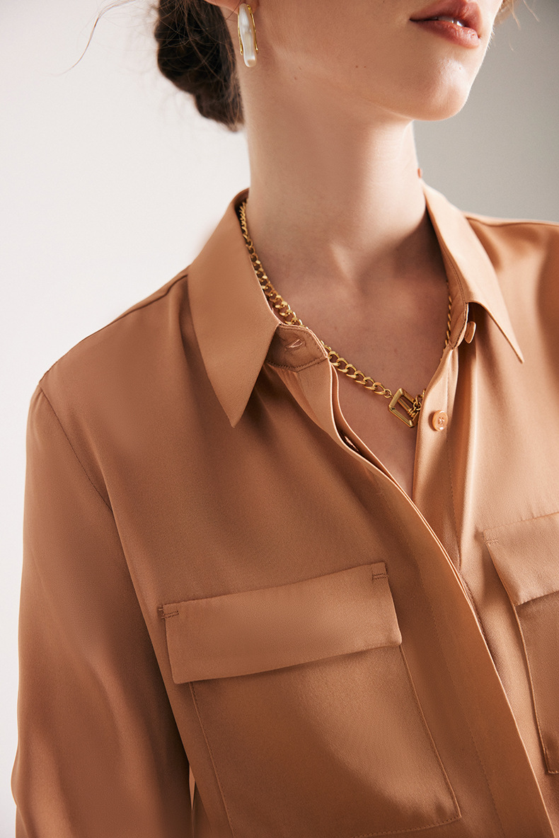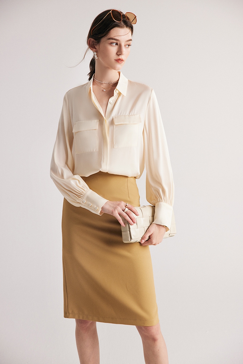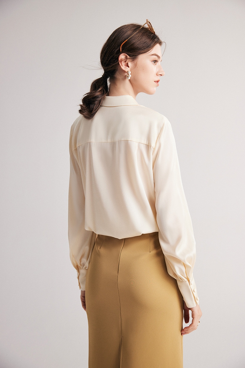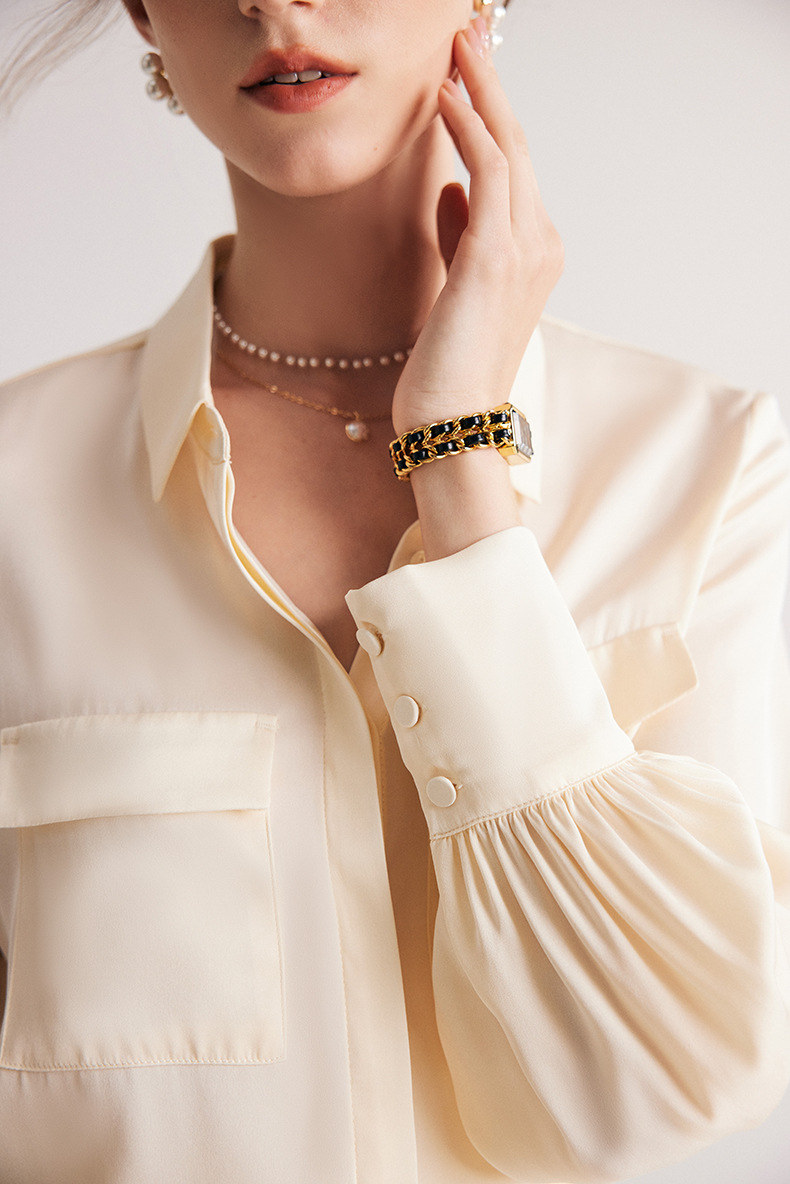 高品真丝衫,加了氨纶使得面料更有张力回弹力,不易勾丝好打理。
