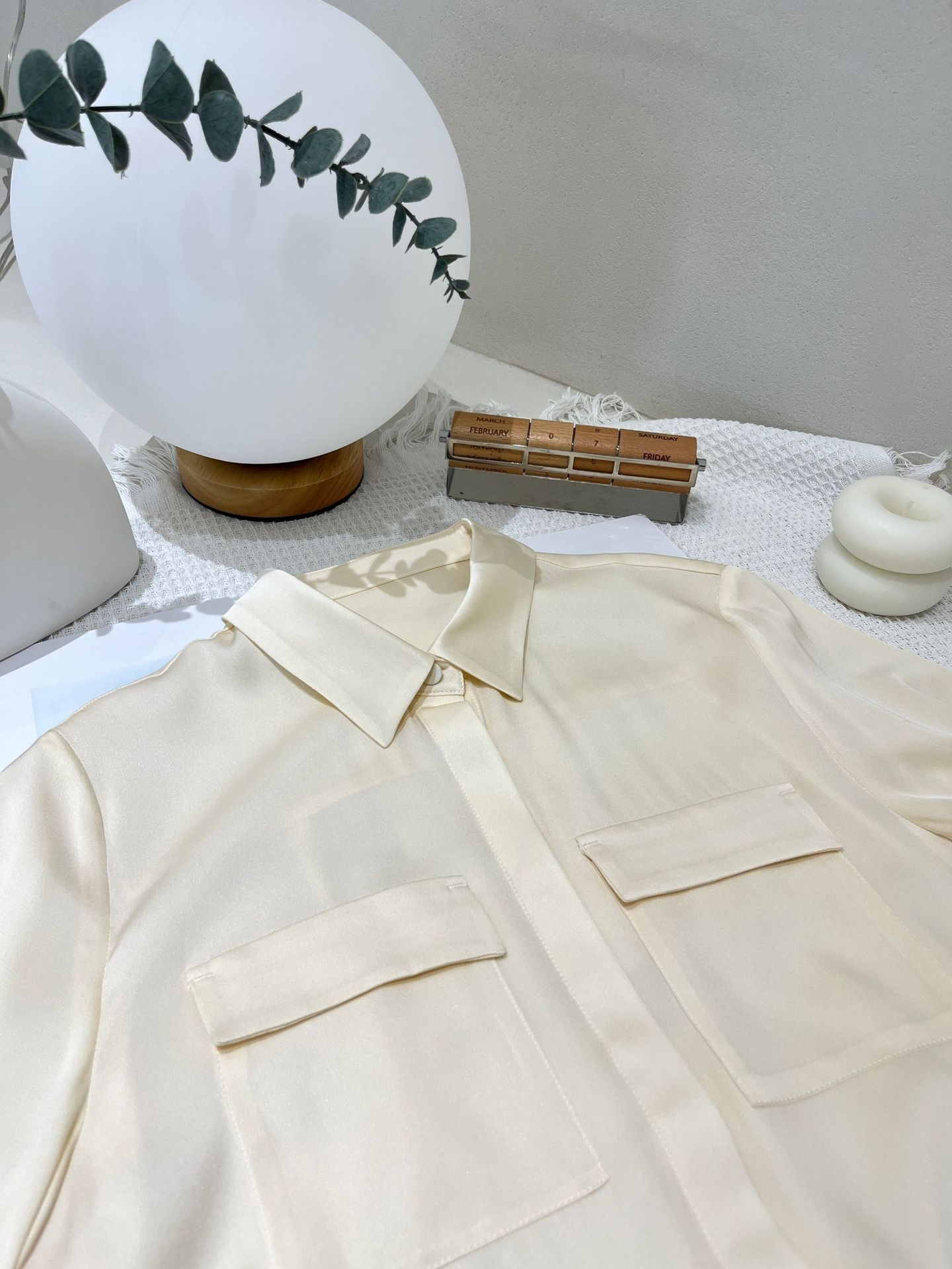之禾同款,高档重磅桑蚕丝缎面真丝,通勤朋友衣橱常青。简单的设计,经典衬衫版型,奶橘系真的太特别啦 不管单穿还是叠穿都好看很吸引人。米色温柔大方。