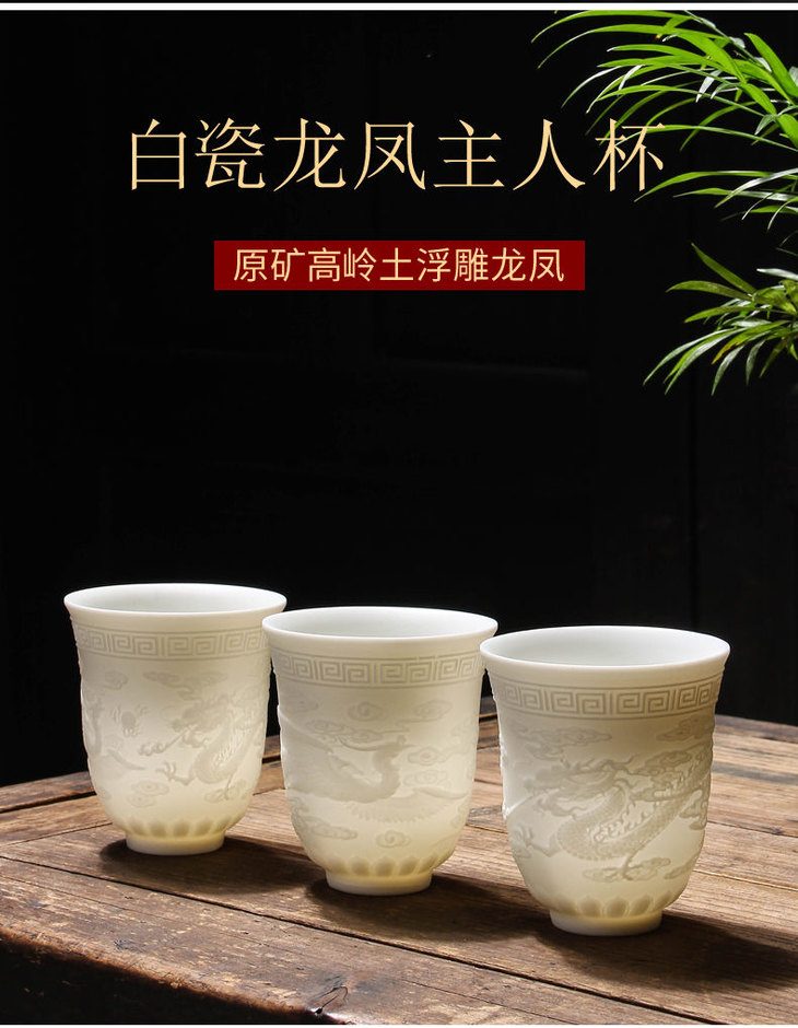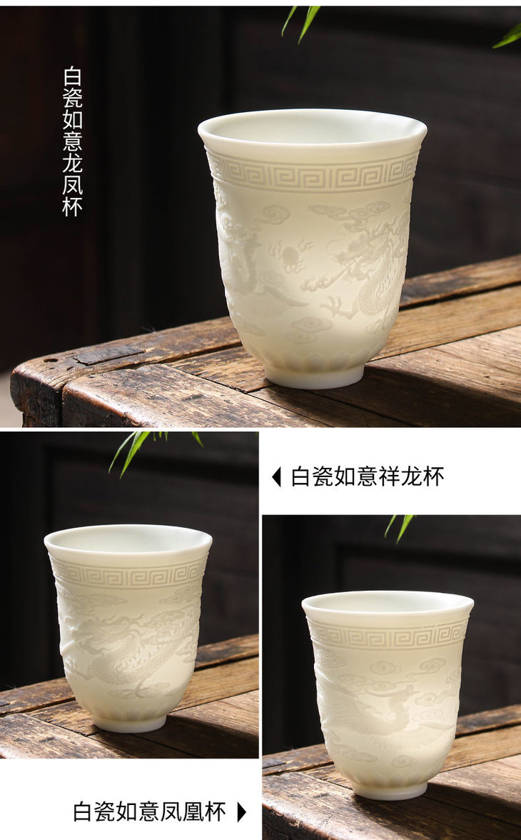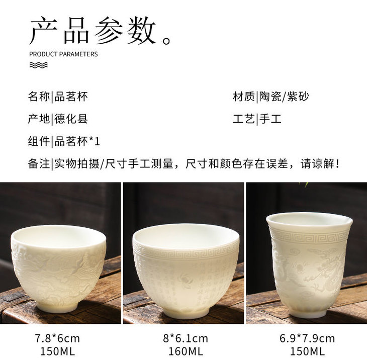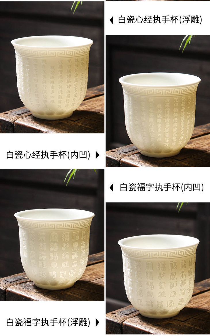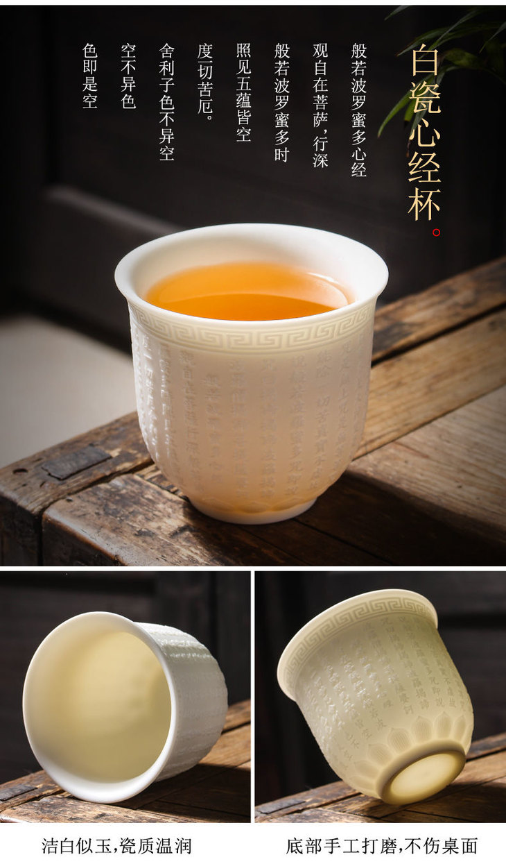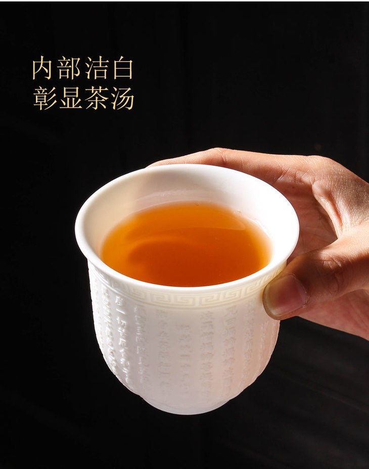 白瓷羊脂玉功夫茶杯 | 心经杯百福陶瓷杯