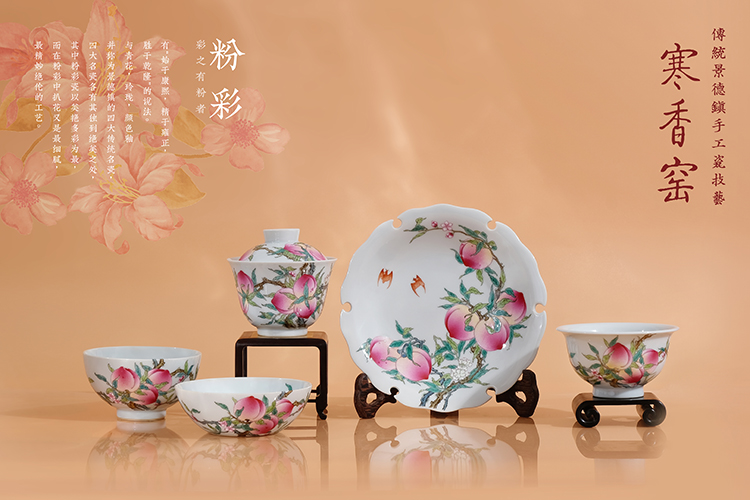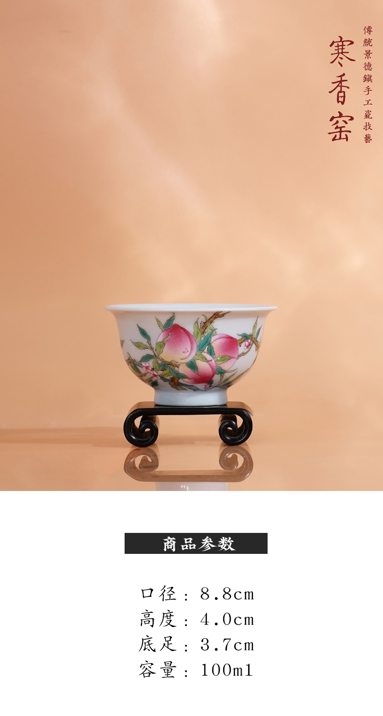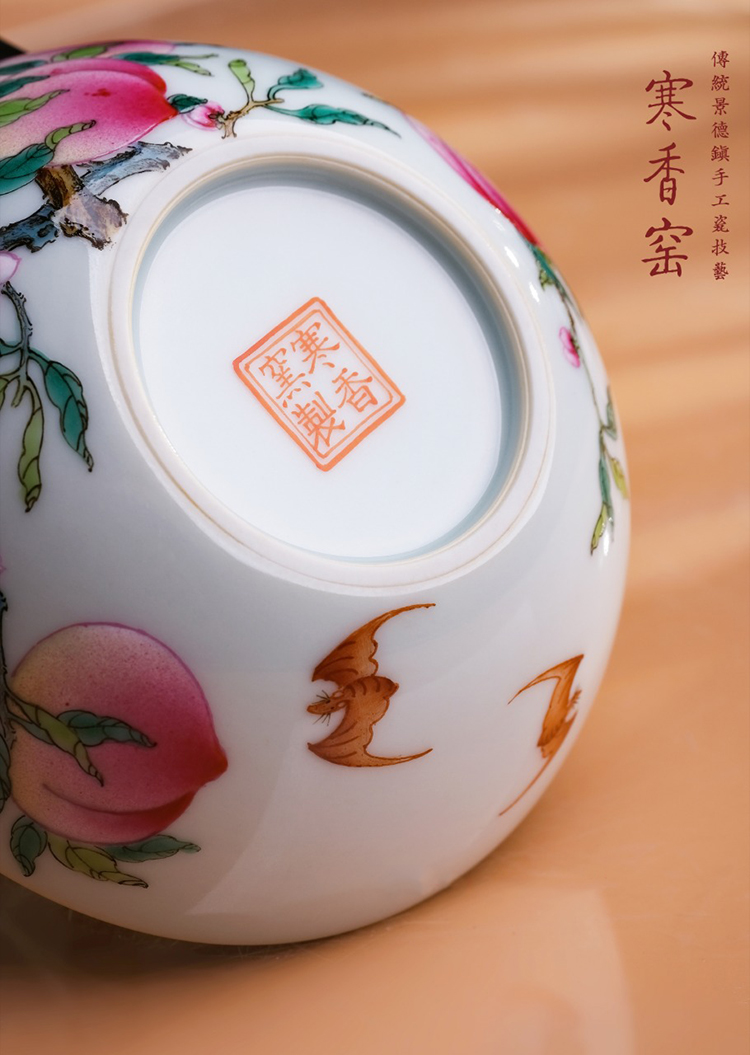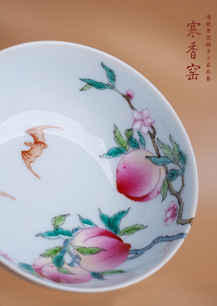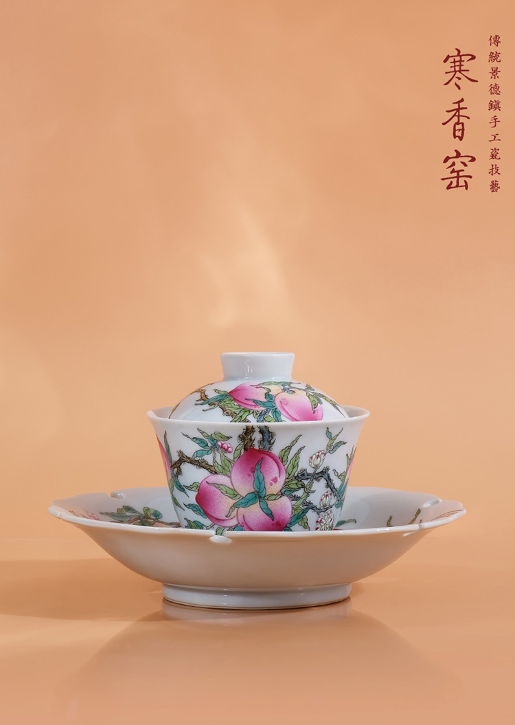 寒香窑乾隆粉彩过枝九桃鸡心杯 过枝九桃卧足杯 过枝九桃压手杯 寿桃接福六桃壶承 桃香满园九桃盖碗(缺货)