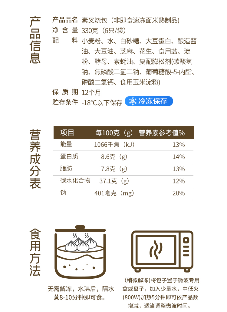 纯素叉烧包 蔬菜包 核桃包 好吃推荐 素包子 每袋6个