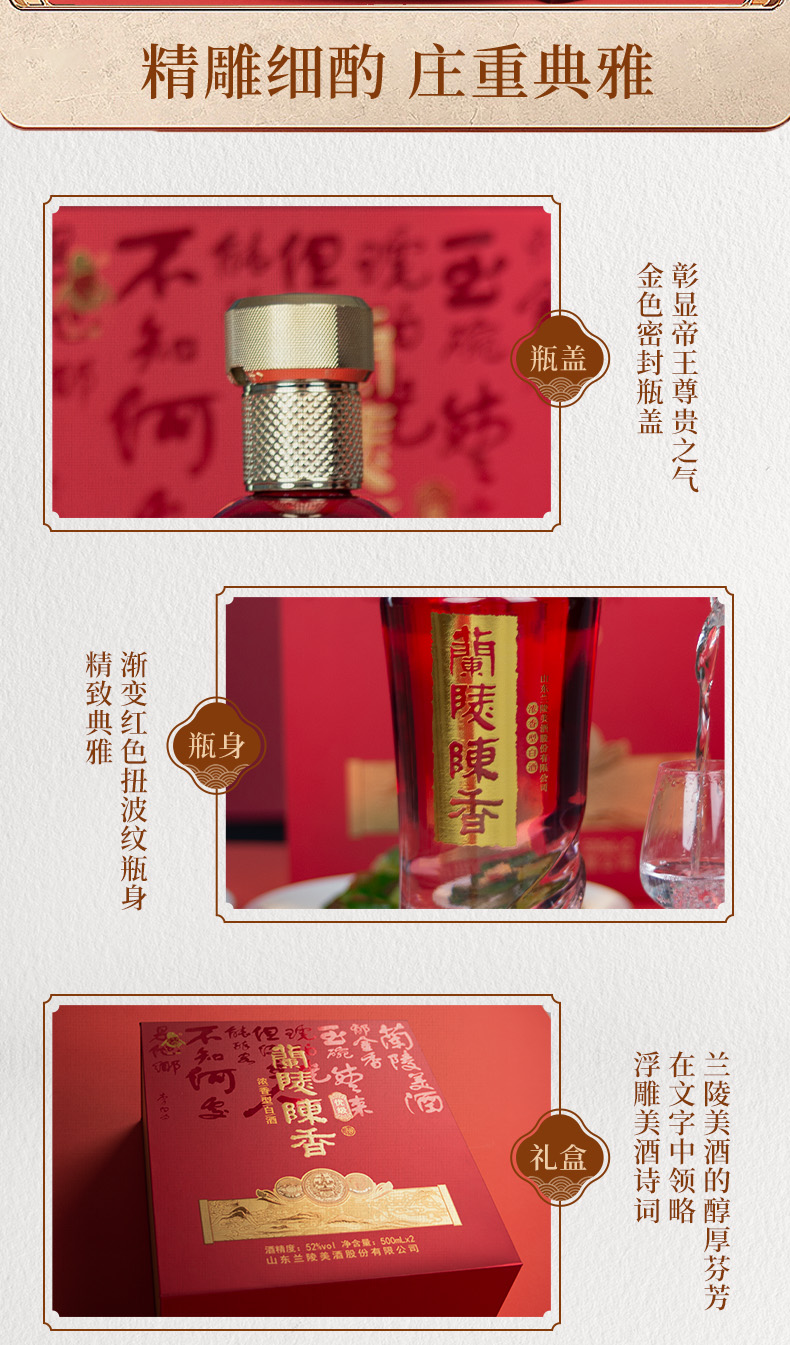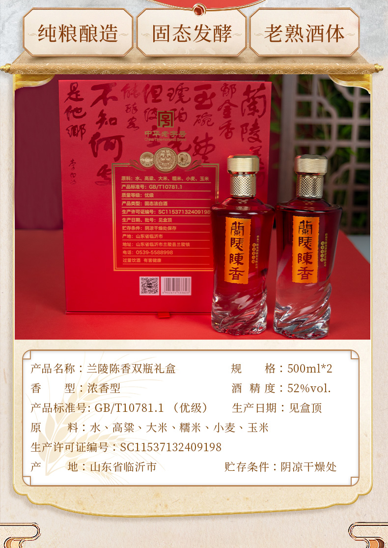 兰陵 新品陈香礼盒 52度浓香型白酒500mL*2瓶礼盒装1提装