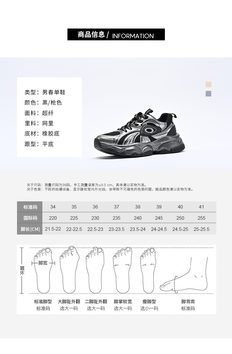 2024经典鲨春季新款时尚厚底百搭潮流老爹鞋男KW250-D14011