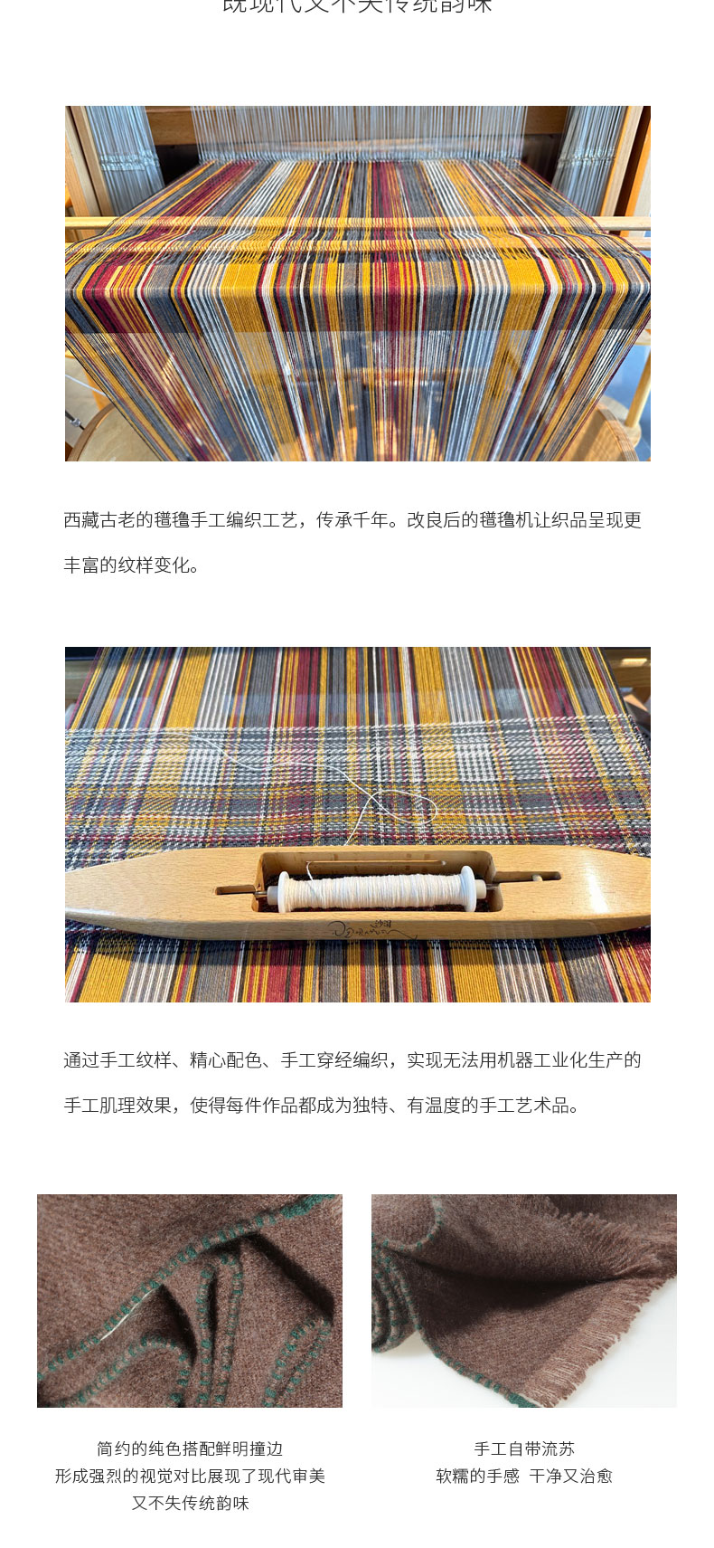 西藏手工氆氇羊绒撞色围巾SJF95P622N
