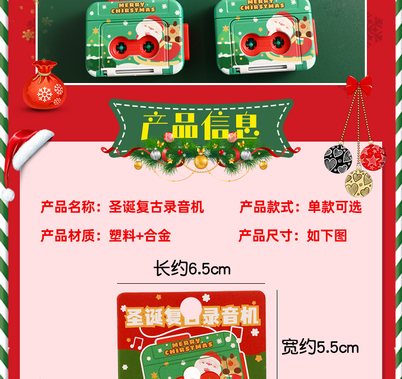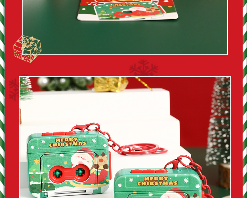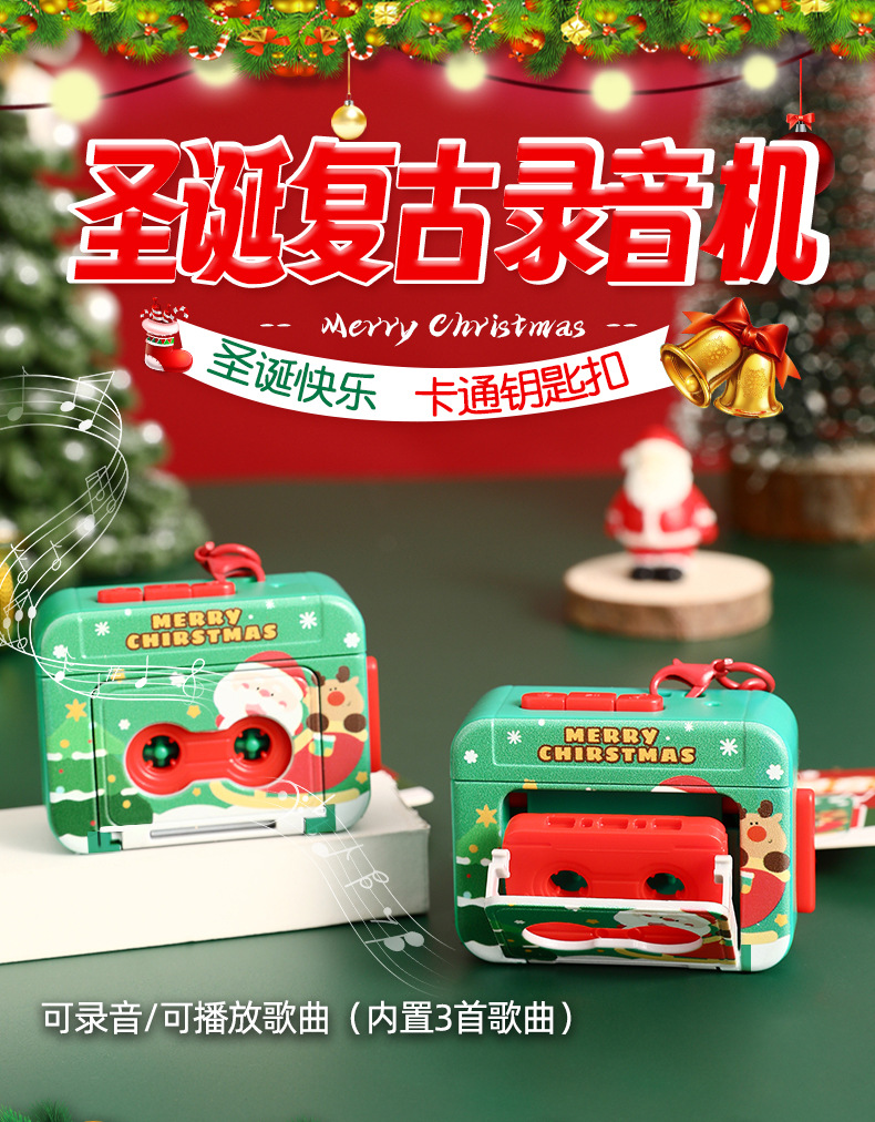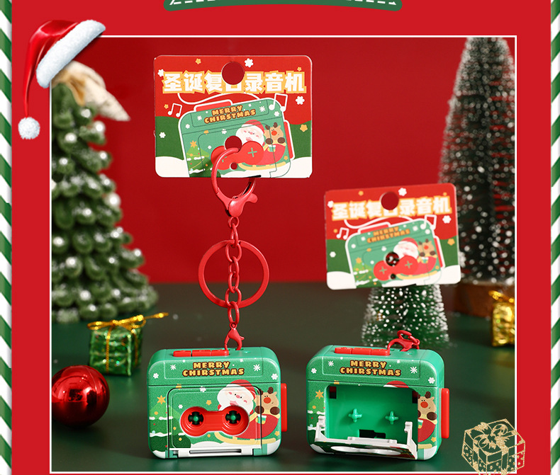 【复古迷你❗️圣诞复古录音机】卡通钥匙扣,可录音/可播放歌曲(内置3首歌曲),做工精致,轻巧便携,材质环保,发声玩具儿童包包小挂件氛围感装饰品QQ