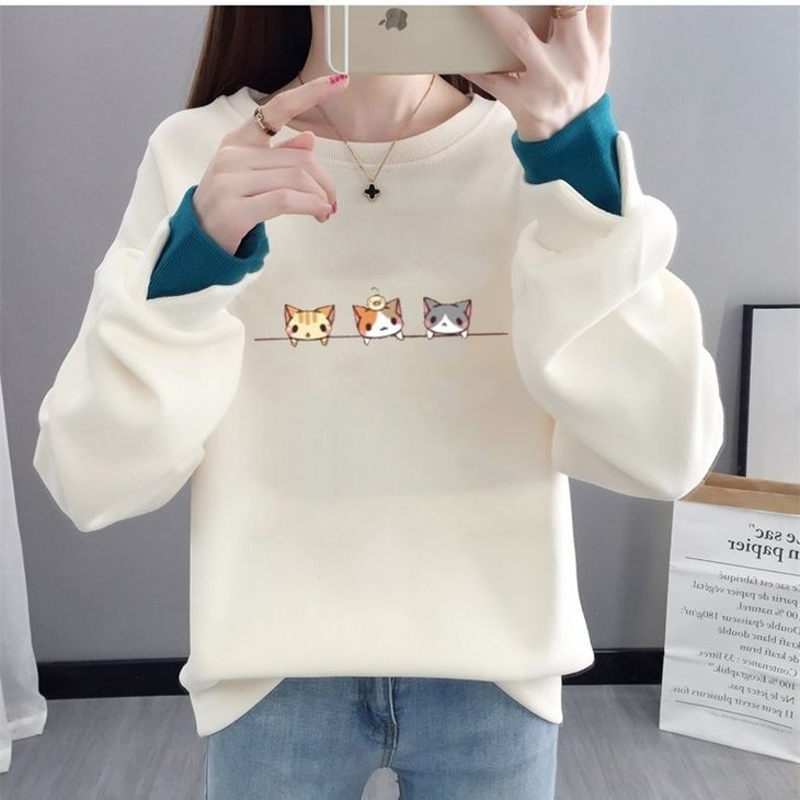 【服饰鞋包】卫衣女秋冬新款圆领宽松印花假两件百搭上衣潮流女装