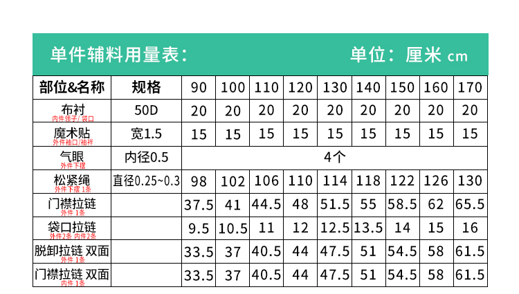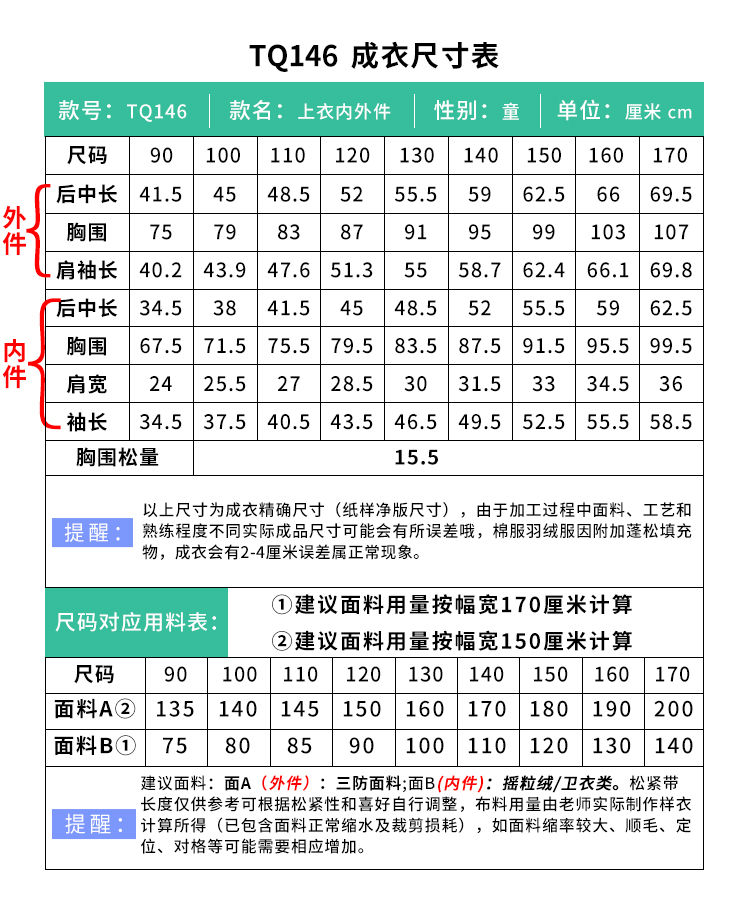裁缝学苑TQ146童装外套新款上衣可拆卸两件套冲锋衣纸样儿童样板图纸