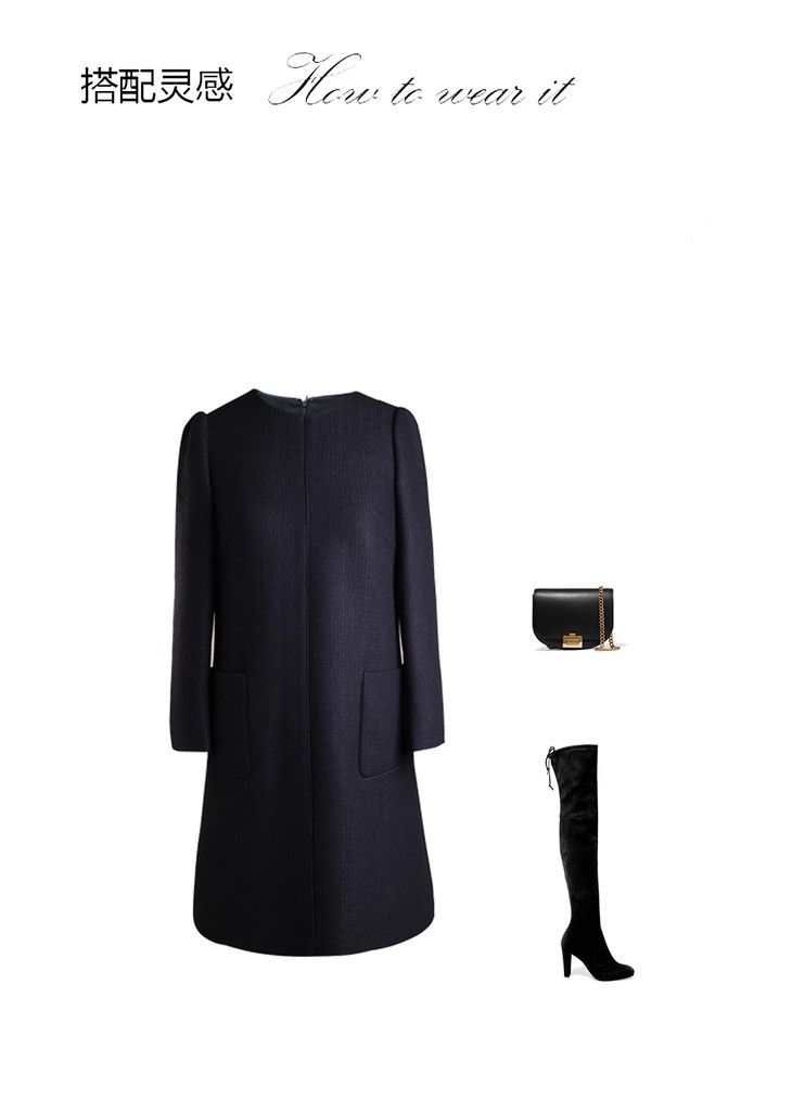 ELITE-长袖A型小香风连衣裙 - 时尚休闲圆领通勤中长裙 1701141